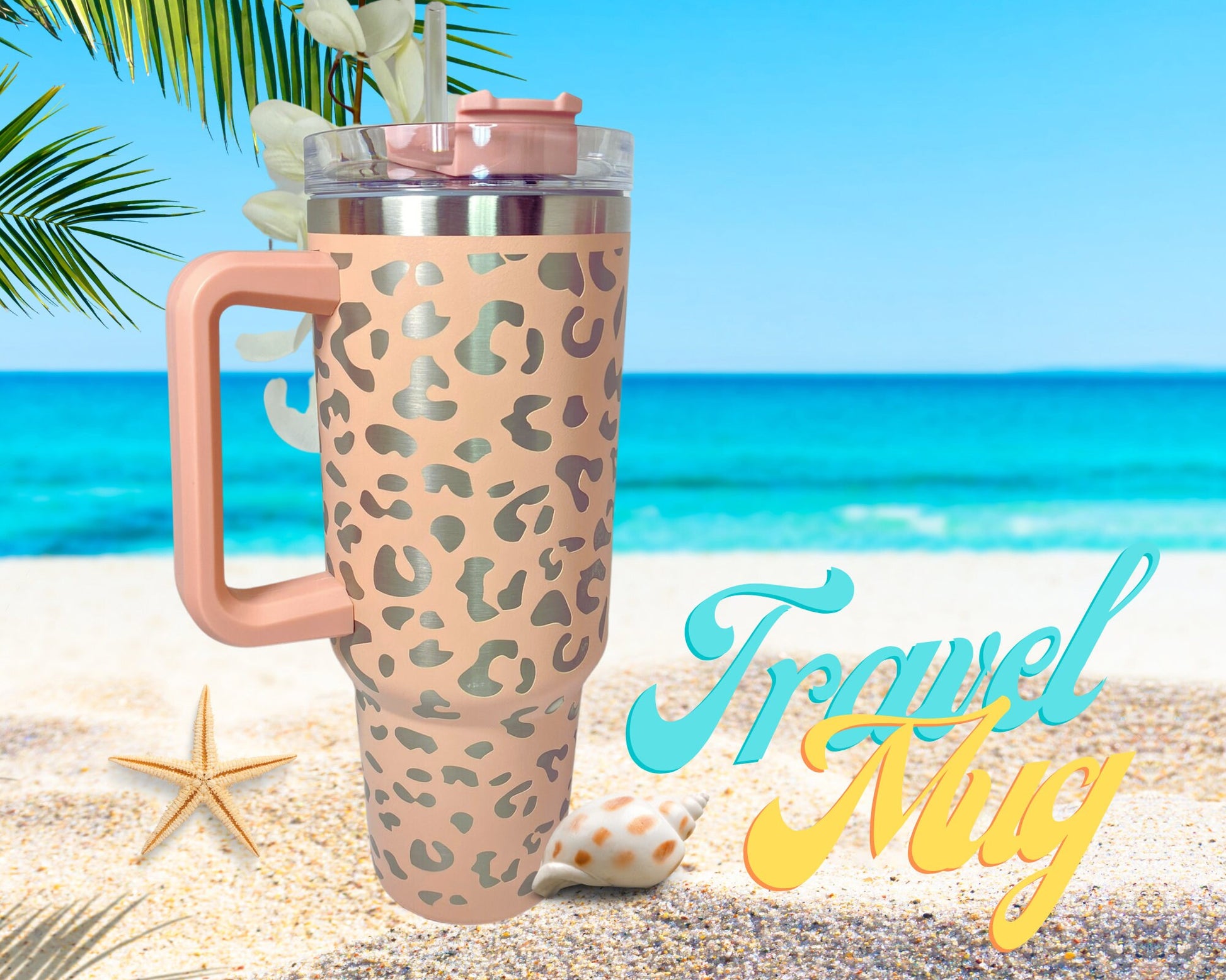 40oz. Double Wall Insulated Tumbler with handle and straw,travel mug, stainless steel double wall vacuum travel, animal print, Ready to ship