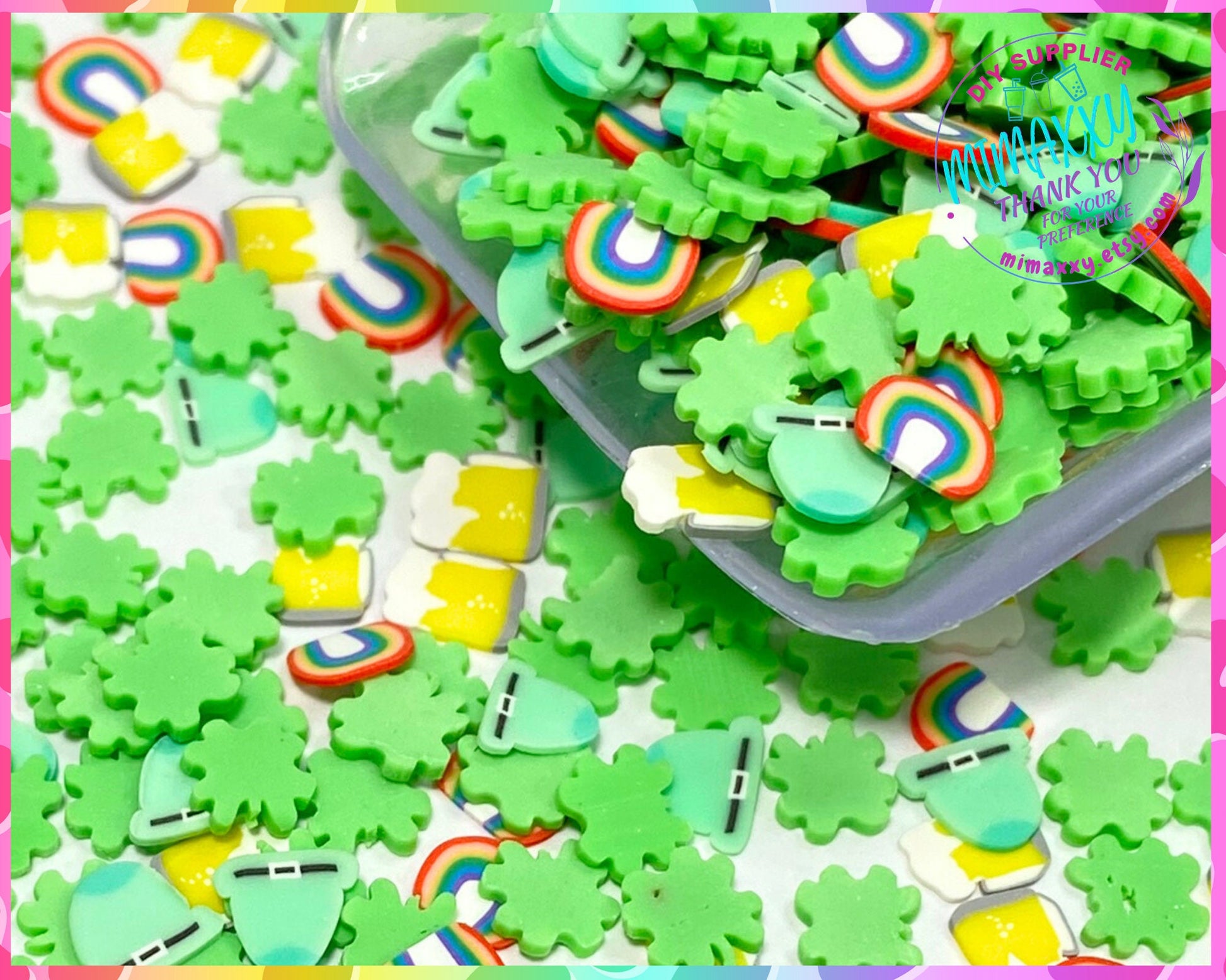 5-10mm Irish Fun Mix Rainbow Shamrock St Patty's Day Sprinkle Slime Polymer Clay Slice Slices Fake Bake Nail Art Faux Craft Ships From USA