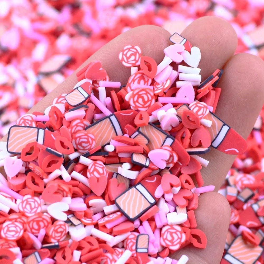 5mm Polymer Clay Slices / mix Valentine's day cherries, hearts, chocolate, strawberries