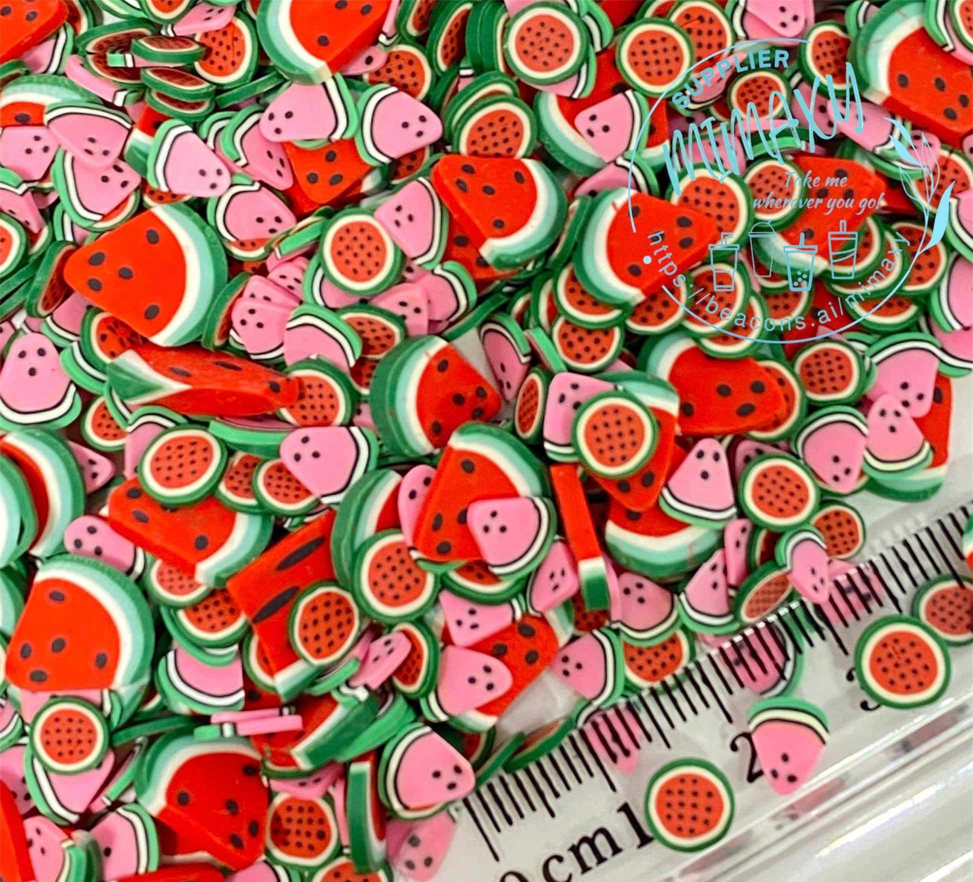 5-10mm Mix Fruits red Pink Watermelon many shapes Sprinkle Slime Polymer Clay Slice Slices Fake Bake Nail Art Faux Craft Ships