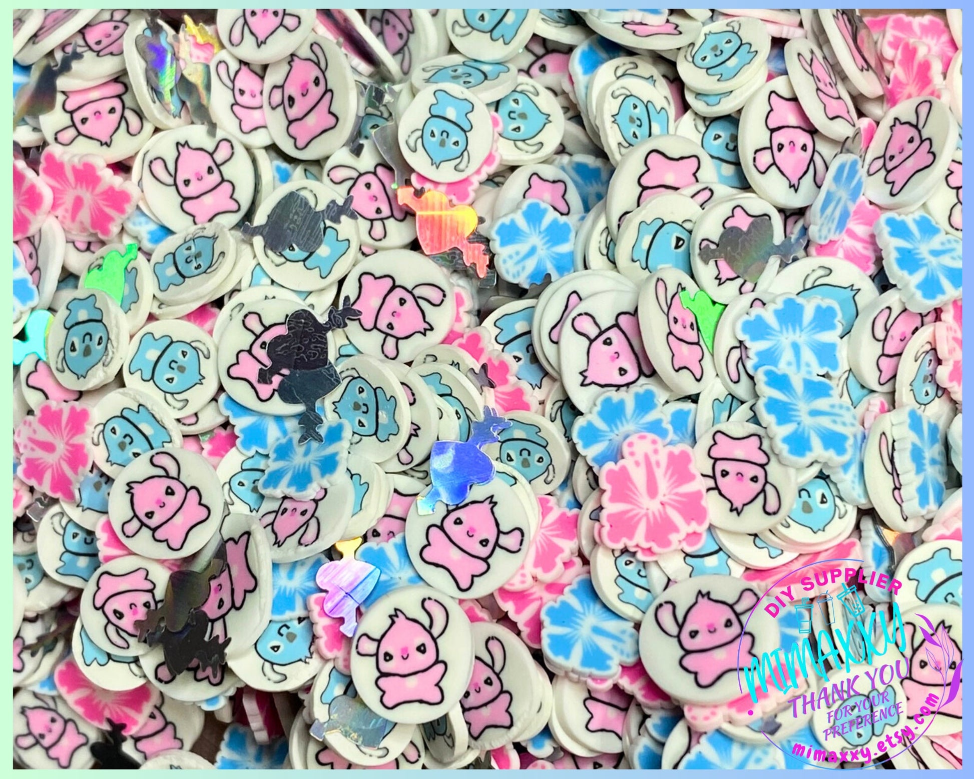 5mm Aloha Friends in love, Ohana, Aloha, Sprinkle Slime, Polymer Clay Slice Slices Fake Bake Nail Art Faux Craft, CARTOON MIX 031
