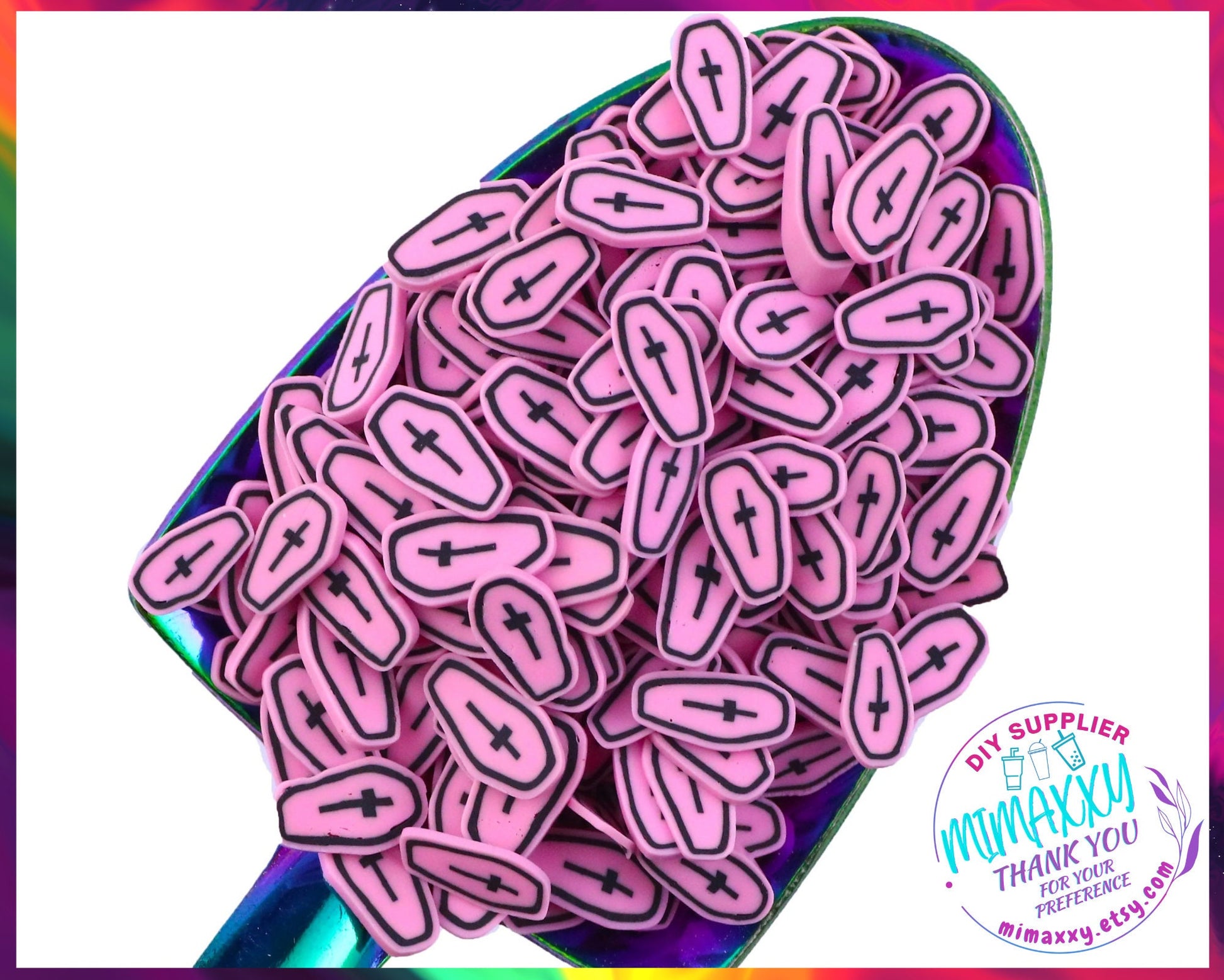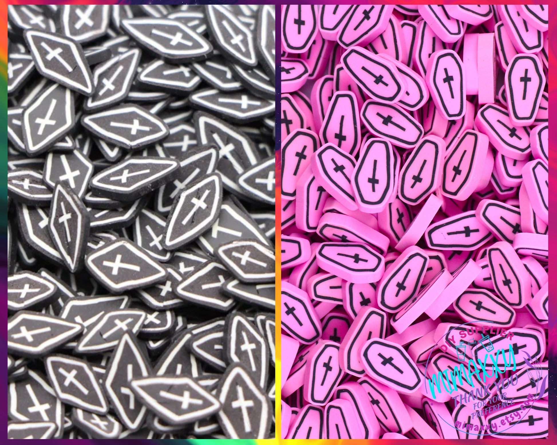 5mm Black Coffin Grave Headstone Cross/ Sprinkle, Slime Polymer Clay Slices, Fake Bake Nail, Craft Ships, mix, black, HALLOWEEN 034- 035