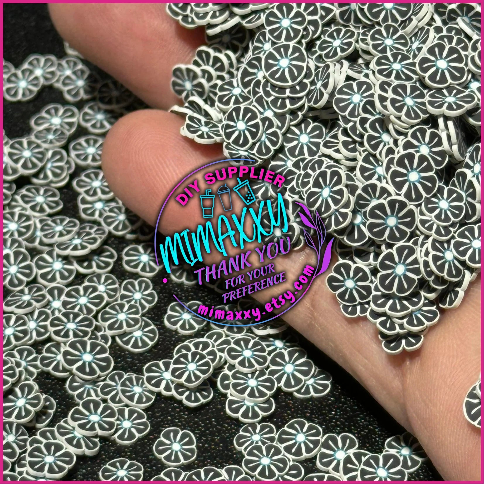 5mm Black Flower/ Sprinkle, Slime, Polymer Clay Slices, Fake, Bake, Nail Art, Faux Craft Ships, HALLOWEEN 085