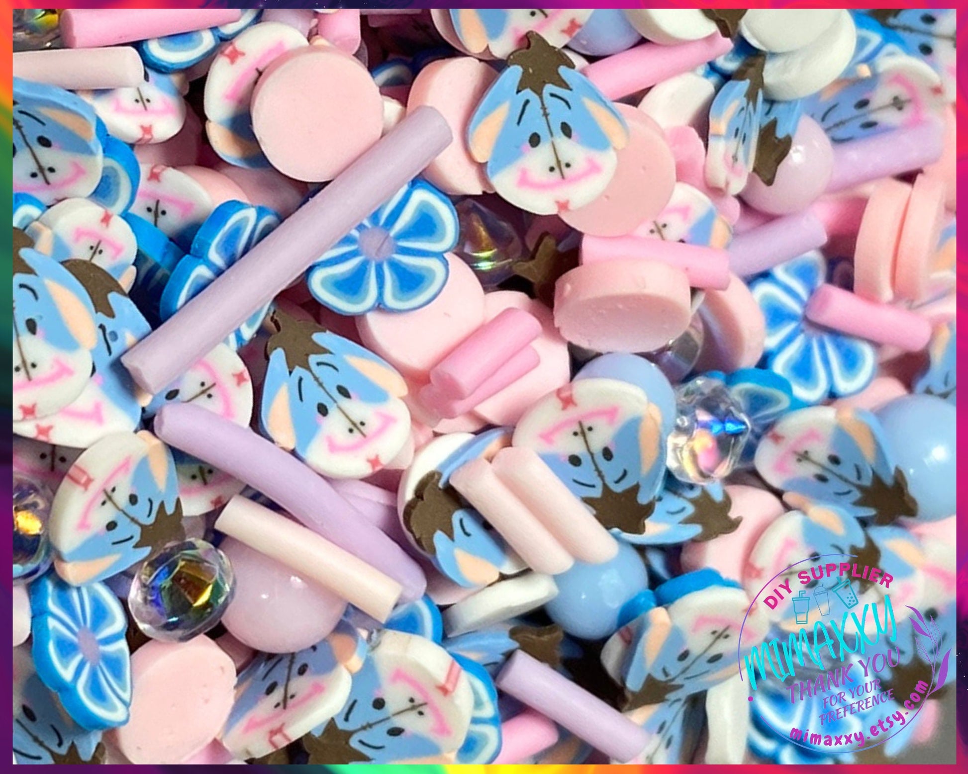 5mm Depressed donkey Mix, Ears, pooh and friends, Sprinkle, Slime Polymer Clay Slices Fake Bake Nail Art Faux Craft Ships, CARTOON MIX 023