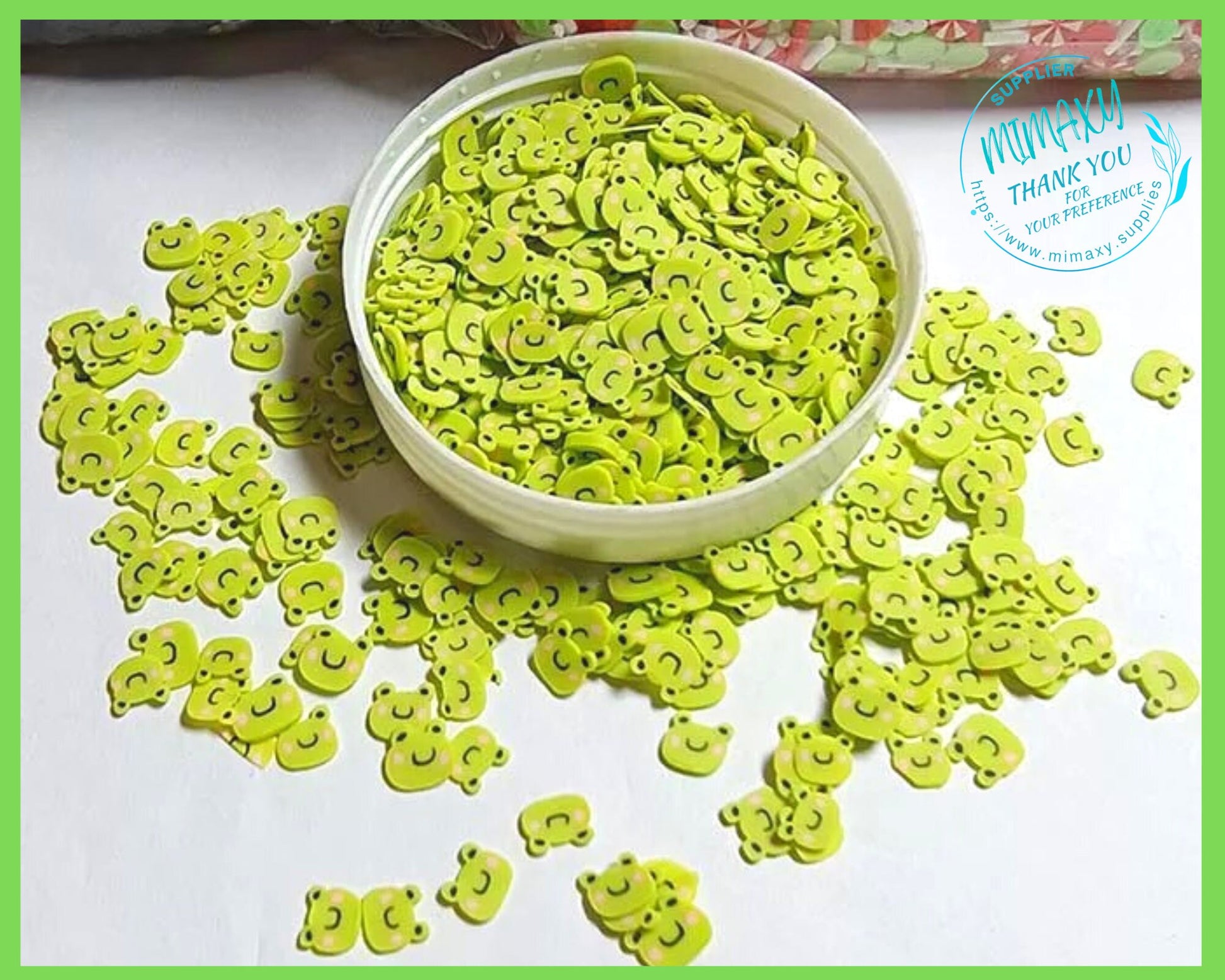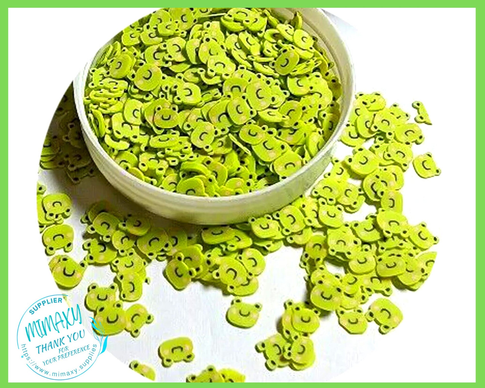 5mm FROG, Green frog, face, fake, sprinkles, snow globe tumblers, Polymer clay slices, resin art, nail art, ANIMAL 002