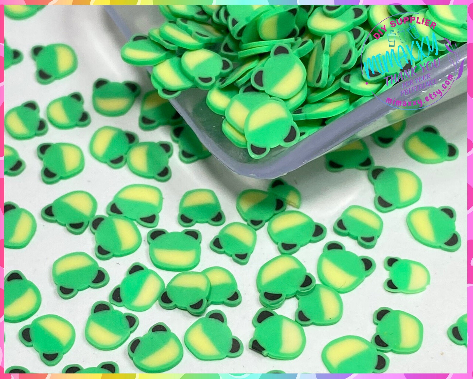 5mm FROG, Green frog, face, fake, sprinkles, snow globe tumblers, Polymer clay slices, resin art, nail art, ANIMAL 004