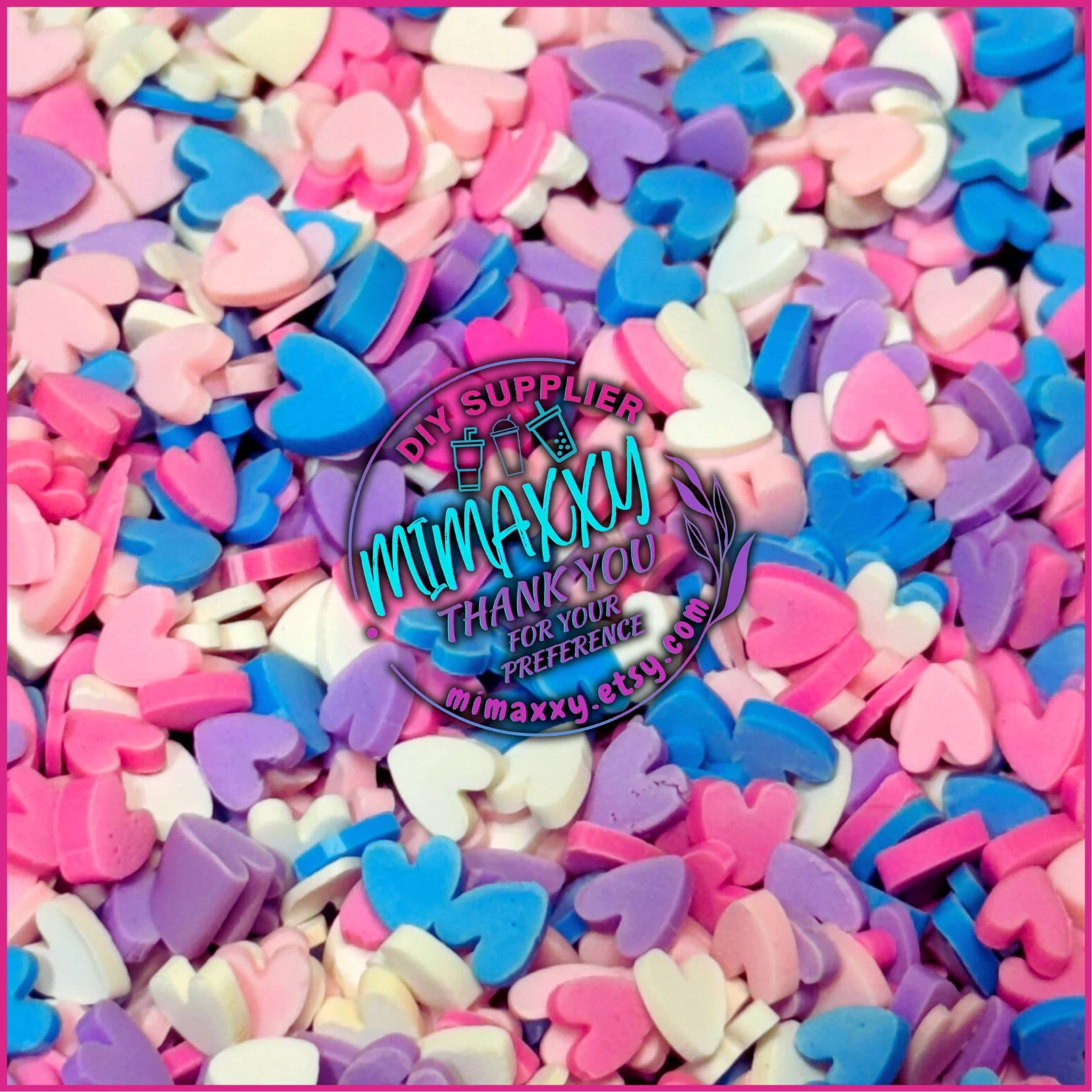 5mm Hearts Blue, pink, purple, white, Polymer Clay Slices cherries, hearts, valentine, pearls, kisses, icecream, pink, LOVE 026