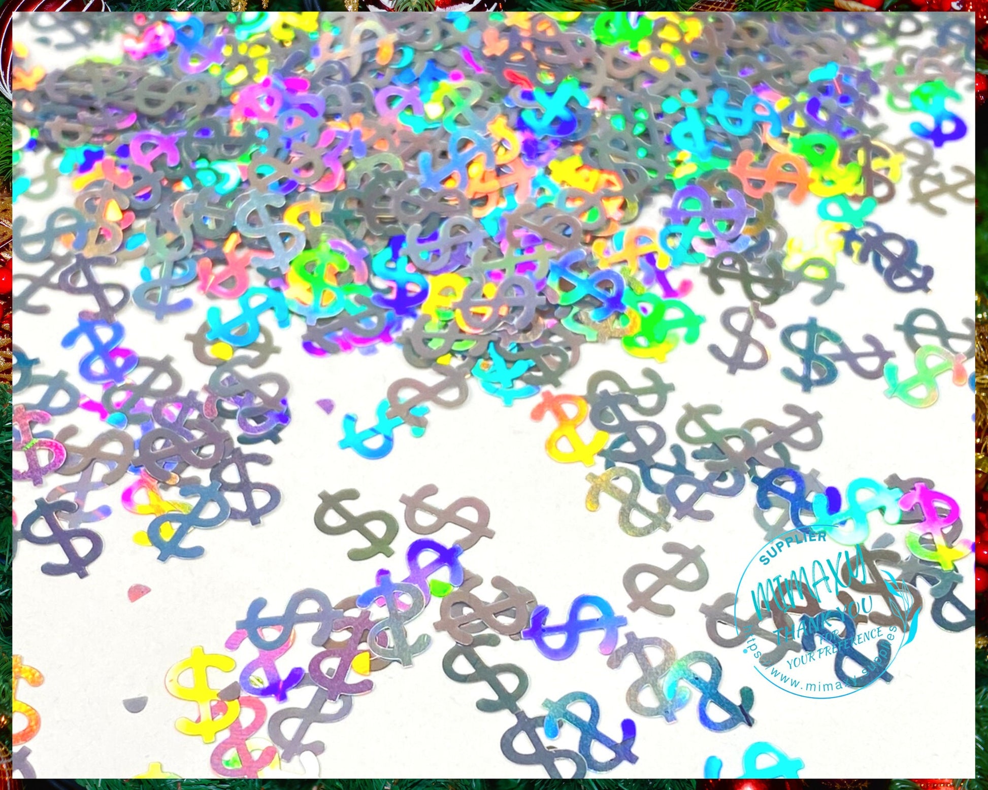 5mm Holographic MONEY SILVER Shaped Glitter, Chunky Glitter Mix, Cosmetic Glitter,Nail Art, Resin art,Snow Globe Tumbler,Craft, CASH 002