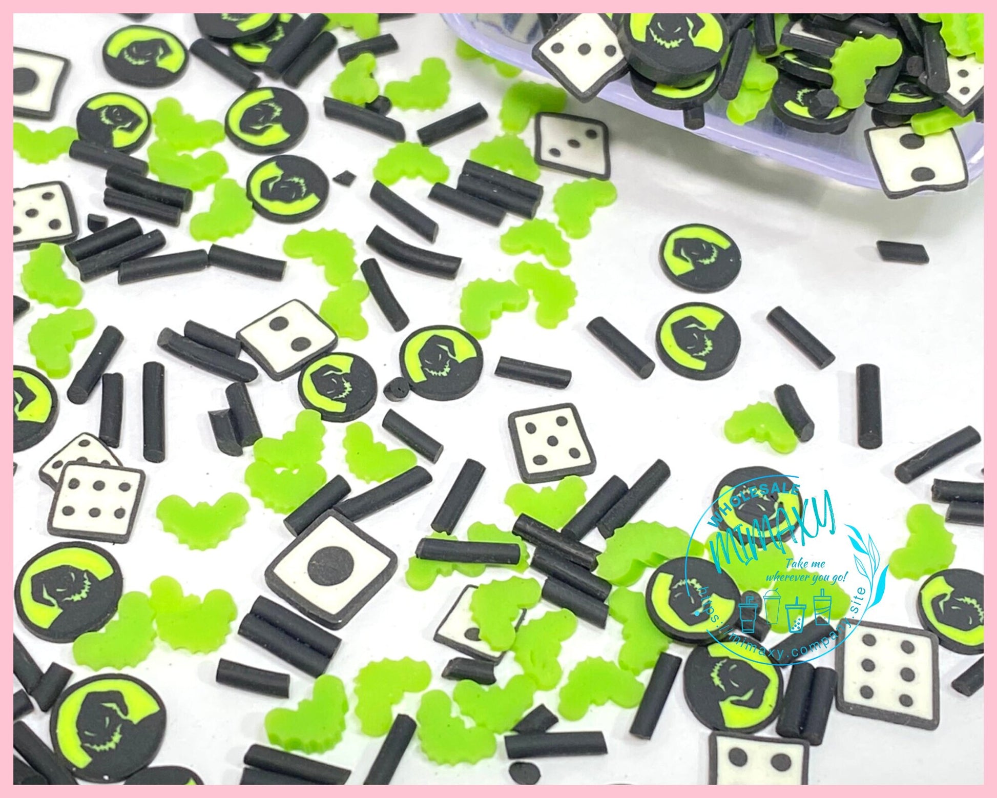 5mm Mix DICE OOGIE, Boogie, Witches brew/ Sprinkle, Slime Polymer Clay Slices, Fake,Nail, Craft , Nightmare before xmas, bath, HALLOWEEN 009
