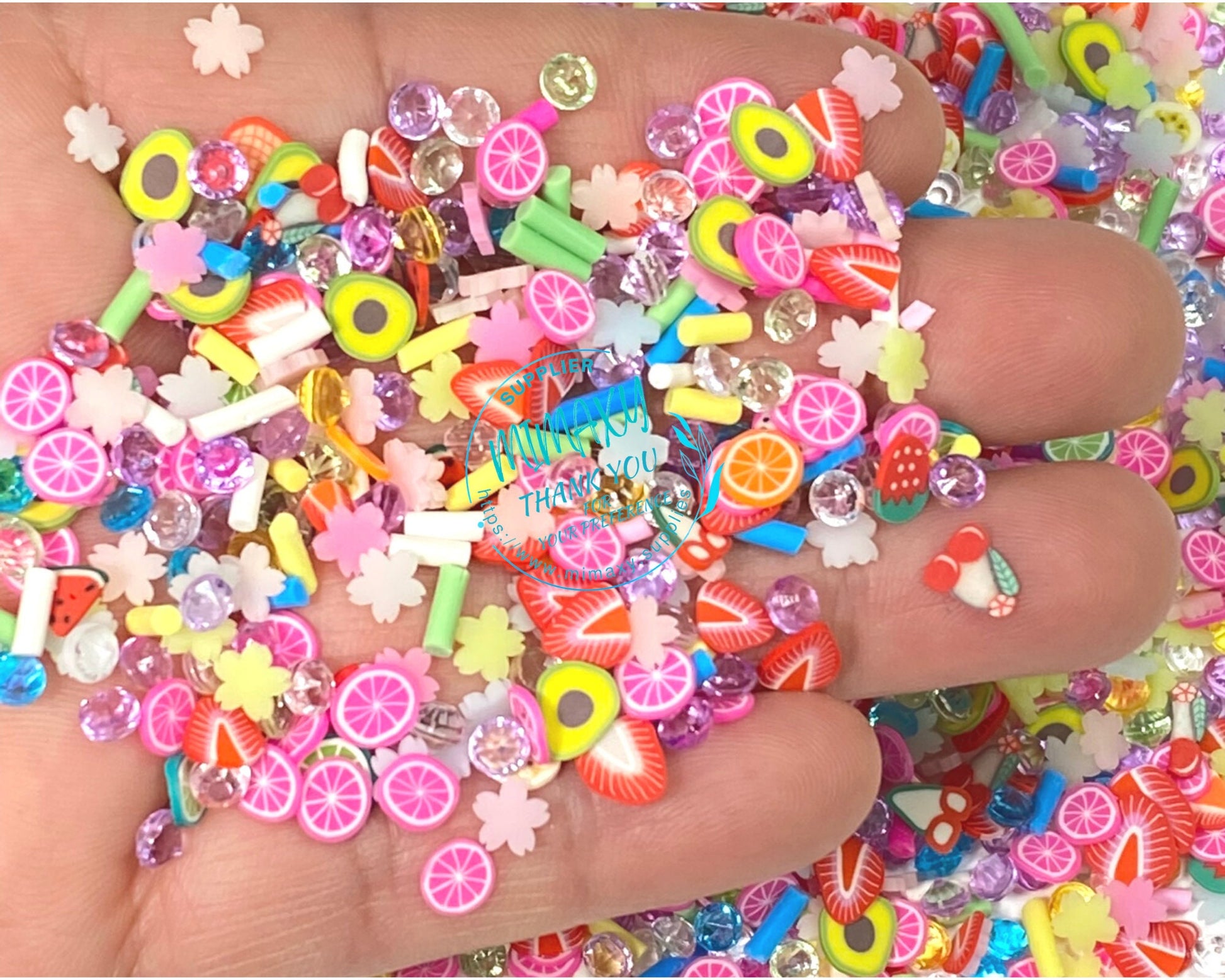The sprinkles of polymer clay, pearls, and bingsu beads can be added to a variety of crafts and projects to add a little color! Some examples include: snow globes, glasses, decoden whipped cream, polymer clay projects, nail art, and much more.