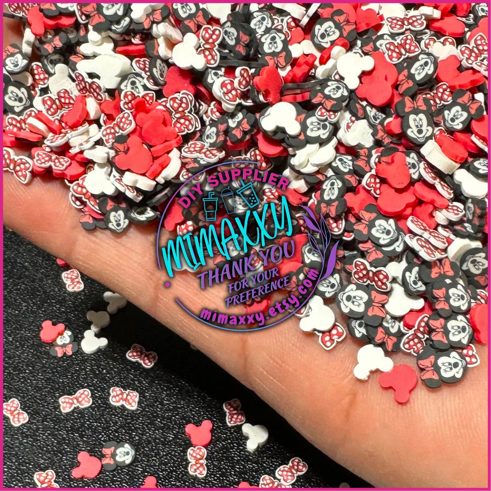5mm Mix Mouse Girl, Mouse Face, Ears Red Black Sprinkle Slime, Polymer Clay Slice Slices Fake Bake Nail Art Faux Craft , MOUSE ITEMS 008