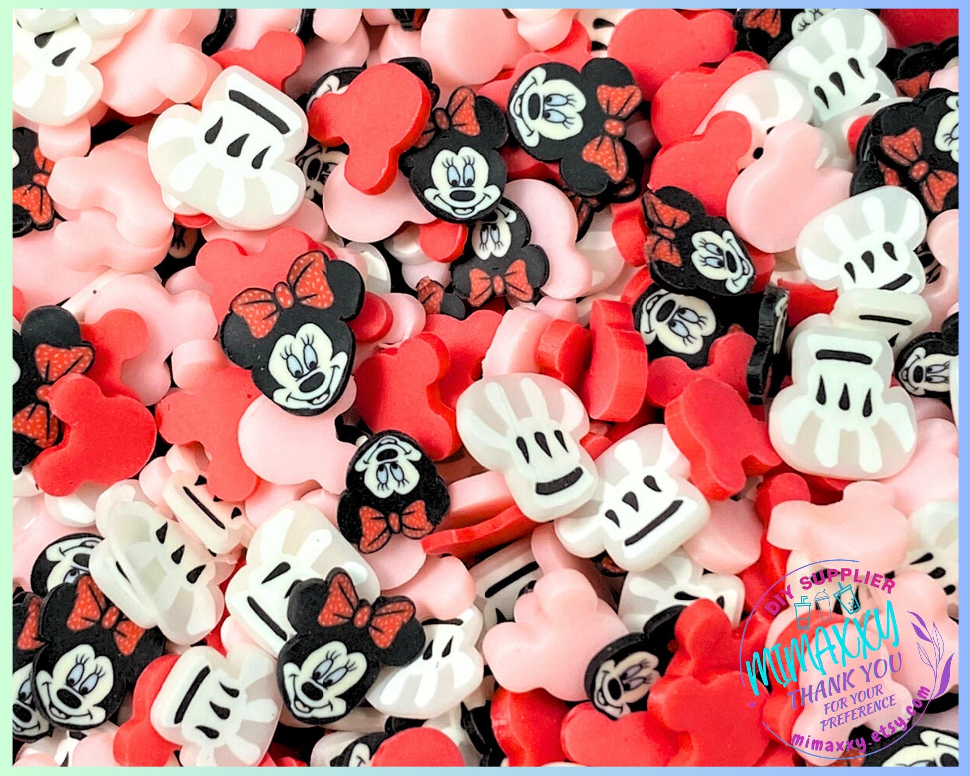 5mm Mouse girl in love, Ears Red Black Sprinkle Slime Polymer Clay Slice Slices Fake Bake Nail Art Faux Craft Ships, MOUSE ITEMS 006