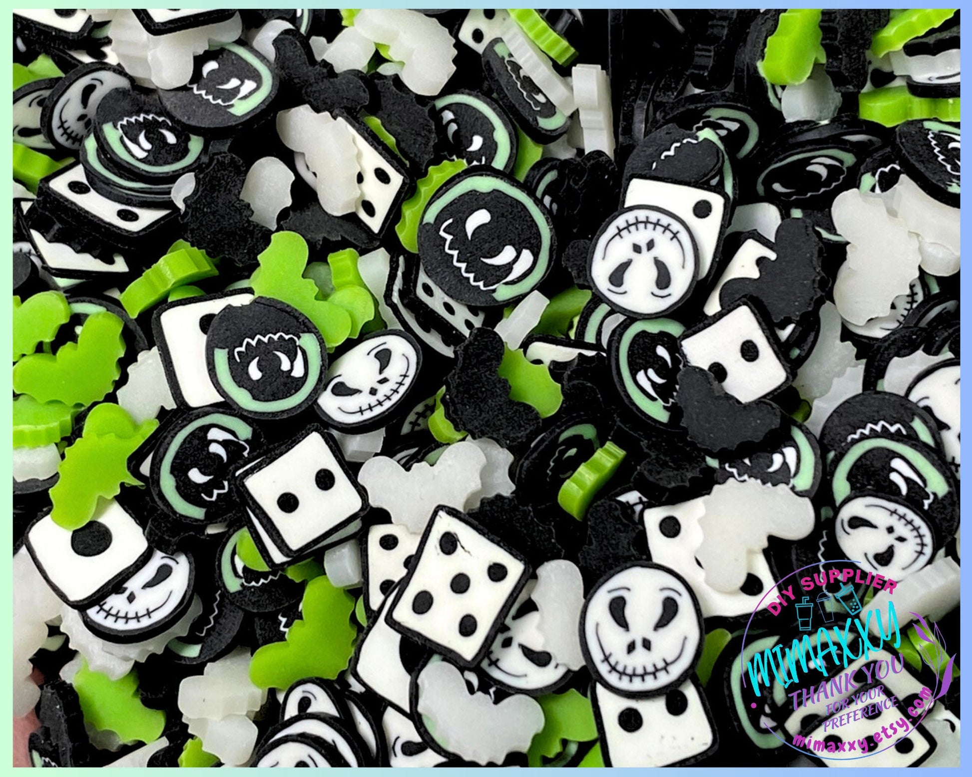 5mm Oogie & Jack, Boogie, Witches, Sprinkle, Slime Polymer Clay Slices, Fake,Nail, Craft , Nightmare before xmas, bath, HALLOWEEN MIX 019