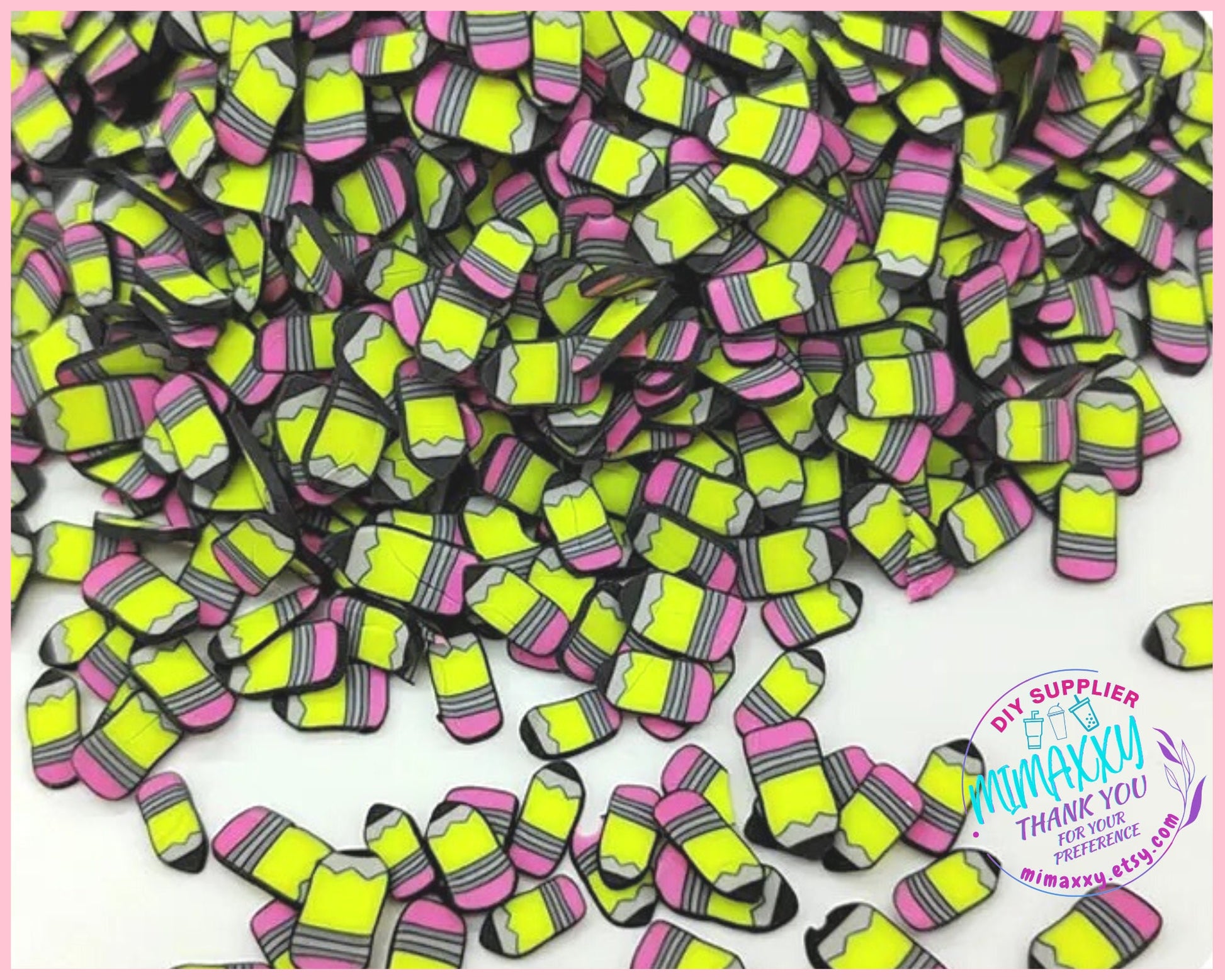 5mm PENCIL, BACK to School, abc, rule, bus, Polymer Clay Slices, resin art, nail art, snow globe tumbler, supplies, Diy, ABC 003