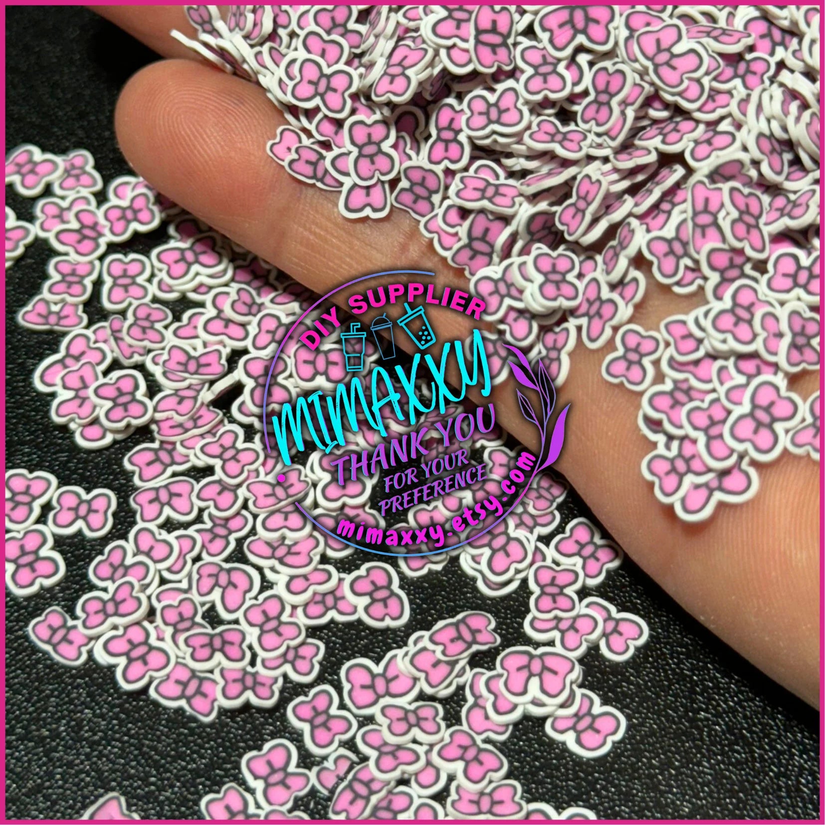 5mm Pink Bow Mouse, Mouse Face, Ears Red Black Sprinkle Slime, Polymer Clay Slice Slices Fake Bake Nail Art Faux Craft , MOUSE ITEMS, A-036