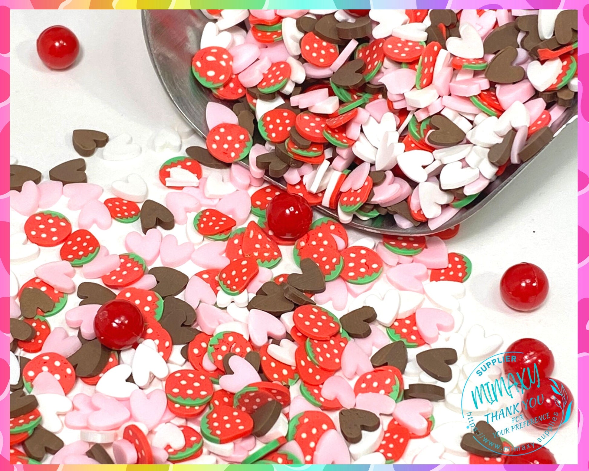5mm Polymer Clay Slices / mix Valentine's day cherries, hearts, chocolate, strawberries