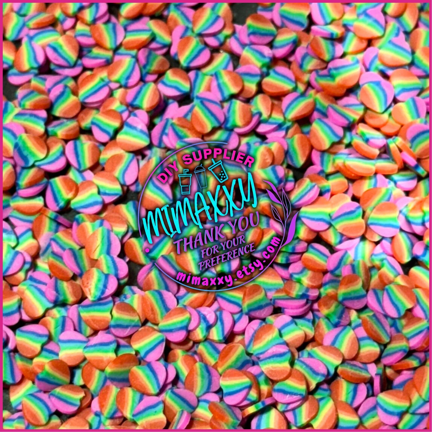 5mm Pride Hearts, Valentine's day Polymer Clay Slices, hearts, chocolate, , rainbow, , kisses, mail lipstick LOVE 035