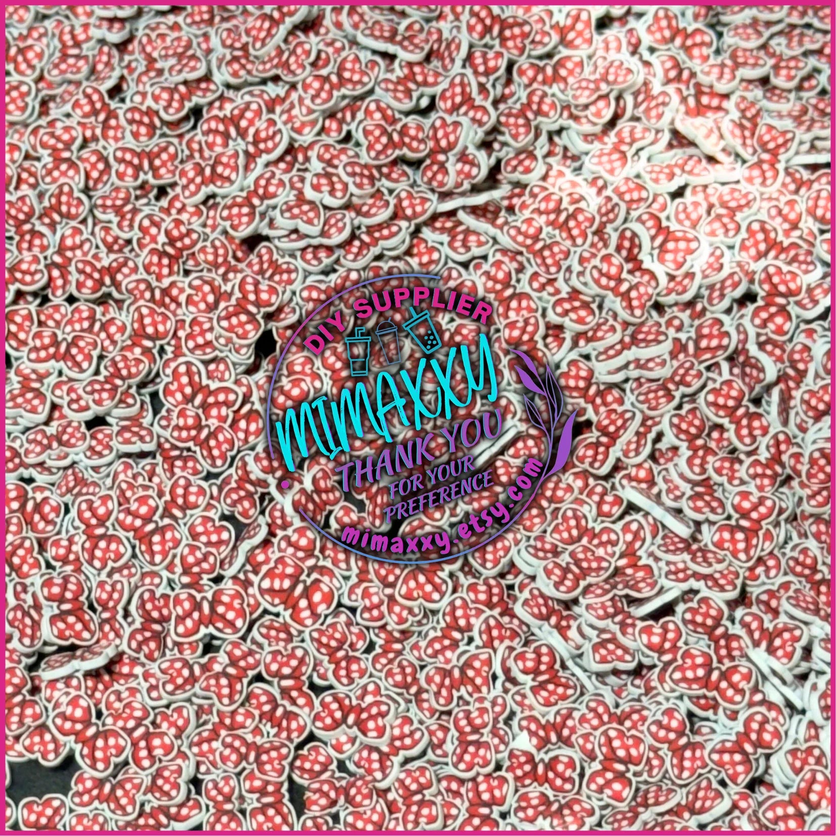 5mm Red Bow Mouse, Mouse Face, Ears Red Black Sprinkle Slime, Polymer Clay Slice Slices Fake Bake Nail Art Faux Craft , MOUSE ITEMS 009