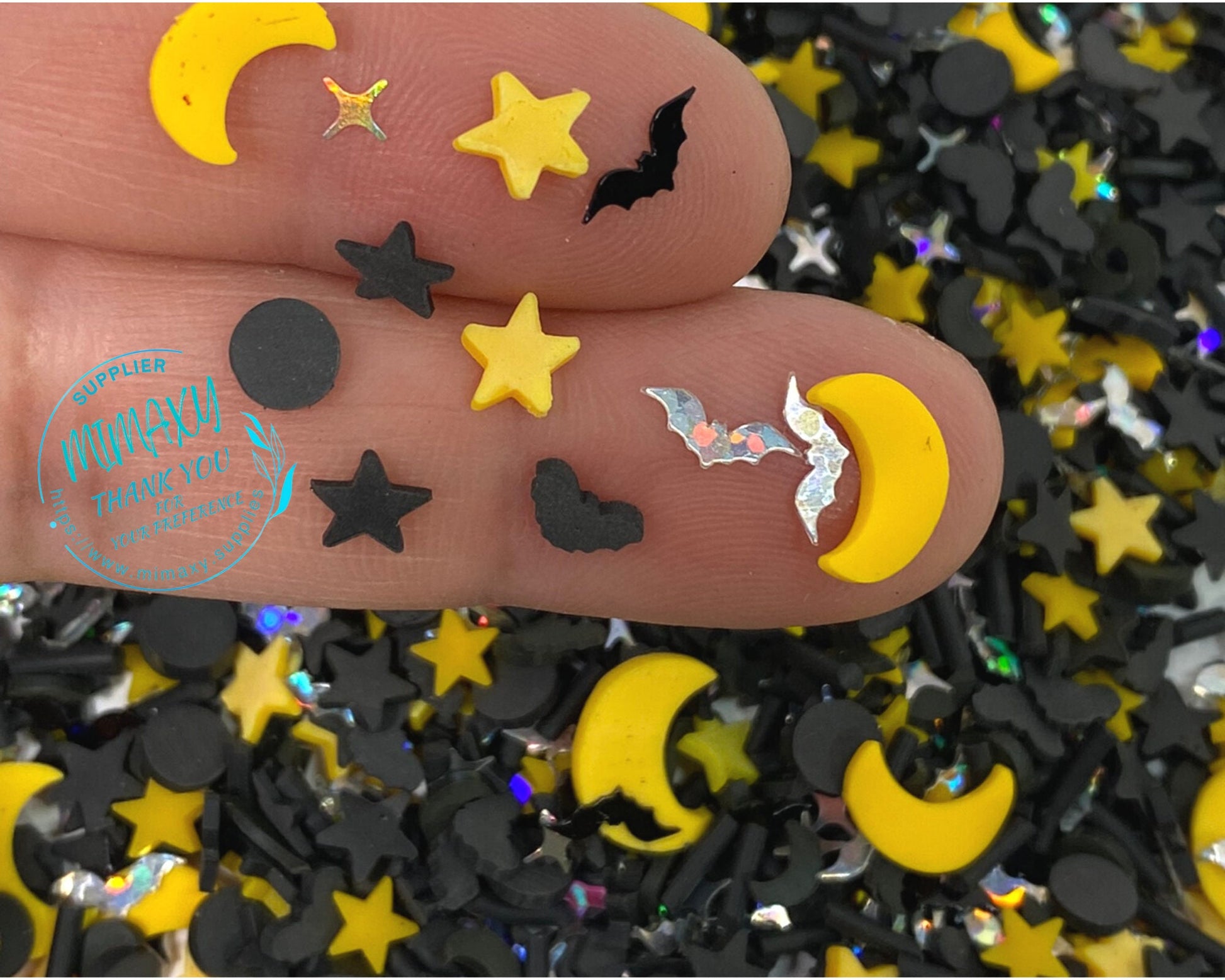 5mm STARS Night mix, Bat /Fimo/Slice Perfect for DIY/Fake Food/Slime/Snow Globe Tumblers/Deco Topping /star, bat, moon, HALLOWEEN 010