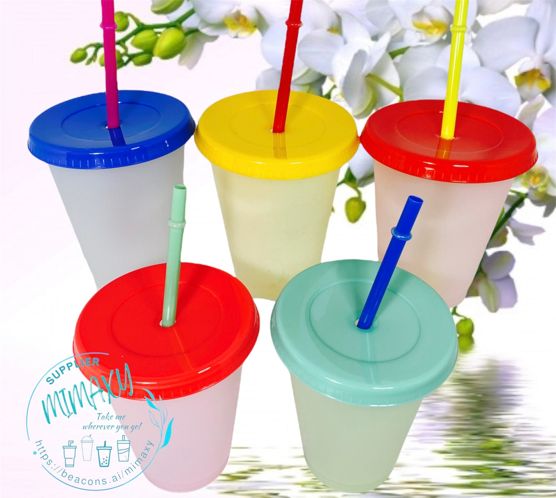 5Pack of 16oz. Color CHANGING cup / Each cup with different color lid and different color straw / Kids plastic tumbler
