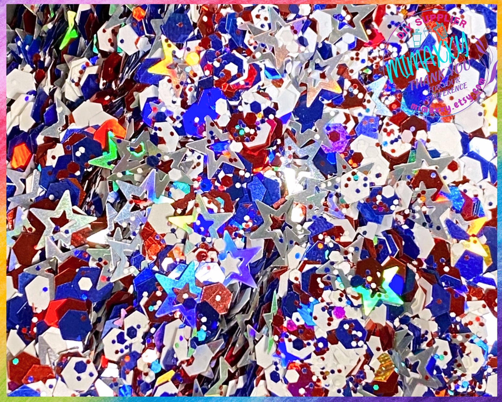 AMERICAN FLAG Chunky Glitter Mix, Shape Gliiter, Cosmetic Glitter, Body Painting, Nail Art, Resin art, Snow Globe Tumbler, Crafts, USA