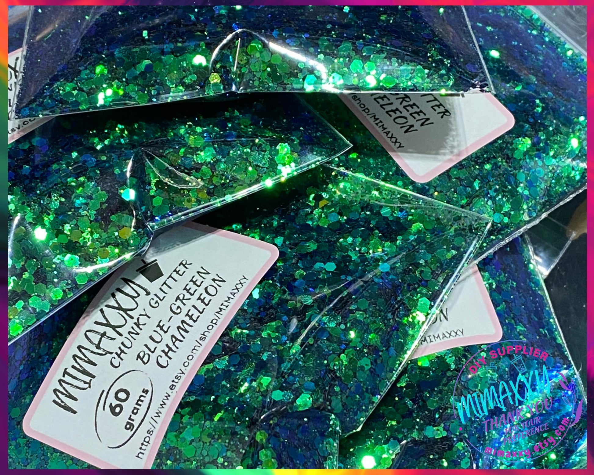 Blue Green Chameleon ,Shaped Glitter, Chunky Glitter Mix, Cosmetic Glitter,Nail Art, Resin art,Snow Globe Tumbler,Craft, CHAMELEON 009