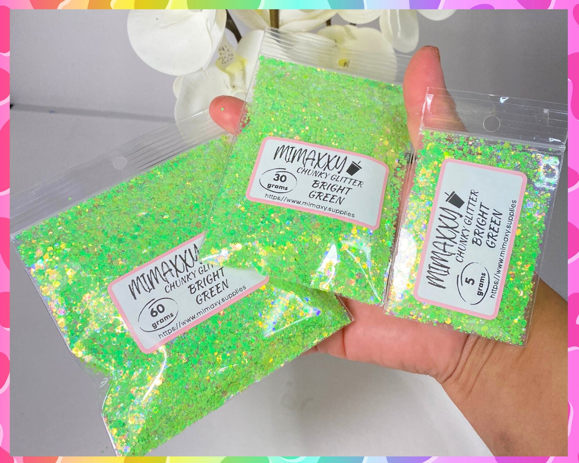 BRIGHT GREEN, Shaped Glitter, Chunky Glitter Mix, Cosmetic Glitter,Nail Art, Resin art,Snow Globe, YELLOW, iridescent, lemon, Bright 003