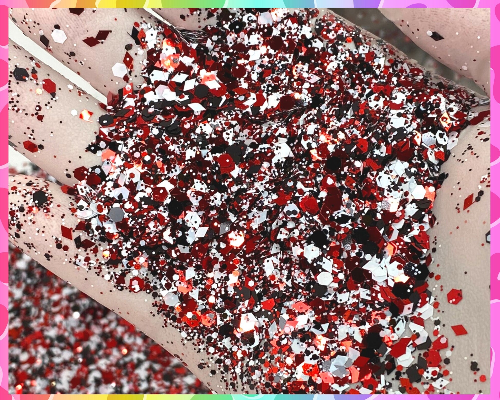 The material with which the glitter is made is appropriate to be used cosmetically in body paint, nail art, makeup, etc. According to the FDA, avoid placing it in the eyes or body cavities.