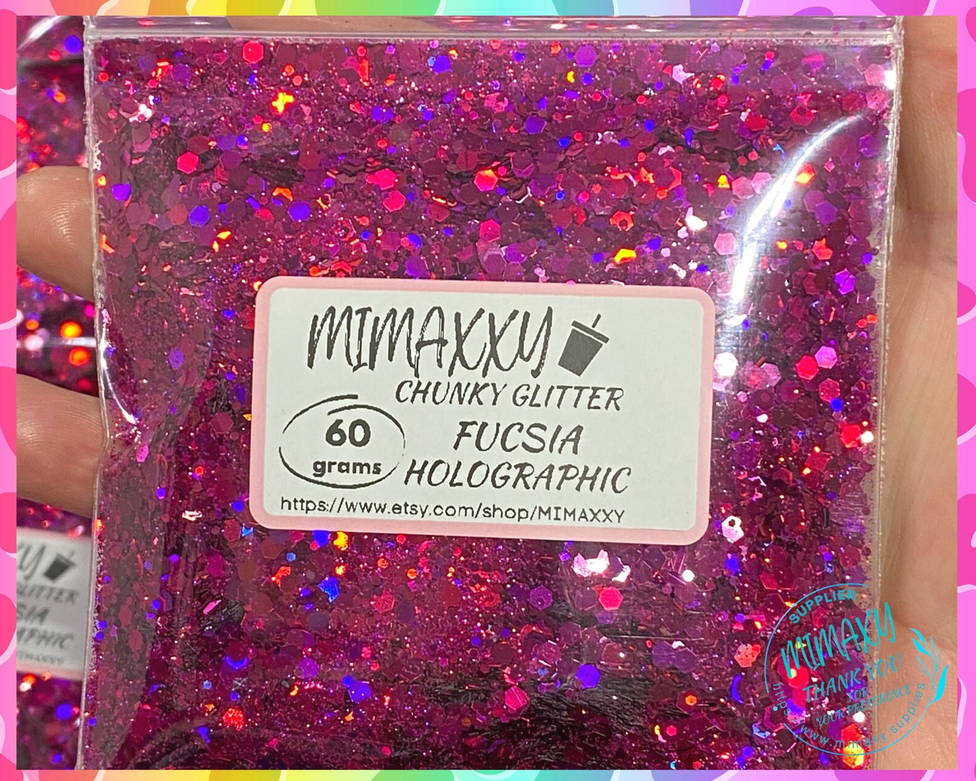 HOLOGRAPHIC FUCSIA, Shaped Glitter, Chunky Glitter Mix, Cosmetic Glitter,Nail Art, Resin art,Snow Globe Tumbler,Craft, Holographic 014