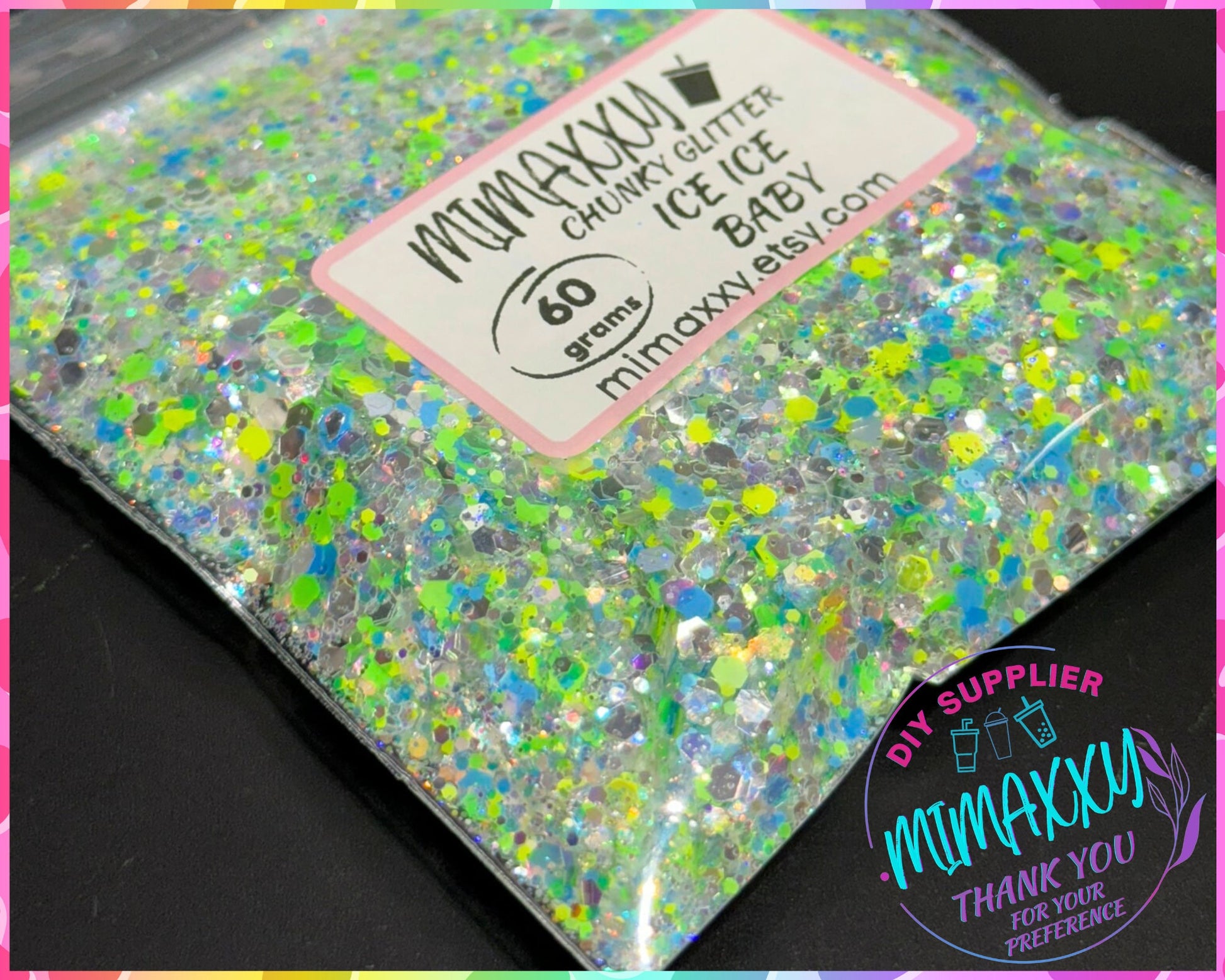 ICE ICE BABY , Chunky Glitter Mix, nail art, Cosmetic Glitter,Nail Art, Resin art,Snow Globe Tumbler,Craft, iridescent, 80, Mirror 003