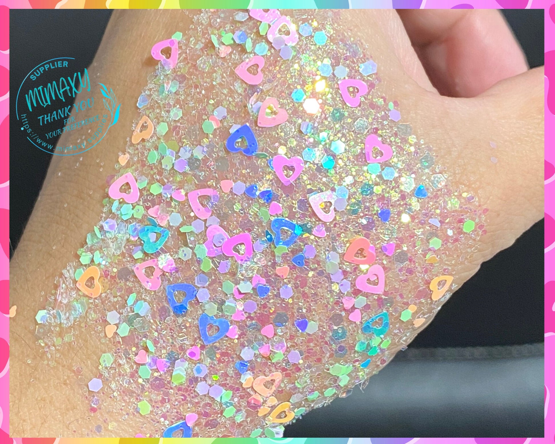 The material with which the glitter is made is appropriate to be used cosmetically in body paint, nail art, makeup, etc. According to the FDA, avoid placing it in the eyes or body cavities.
