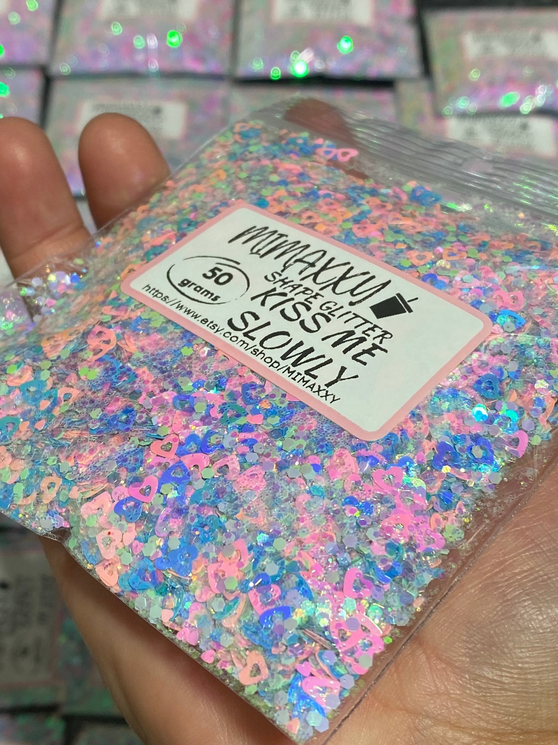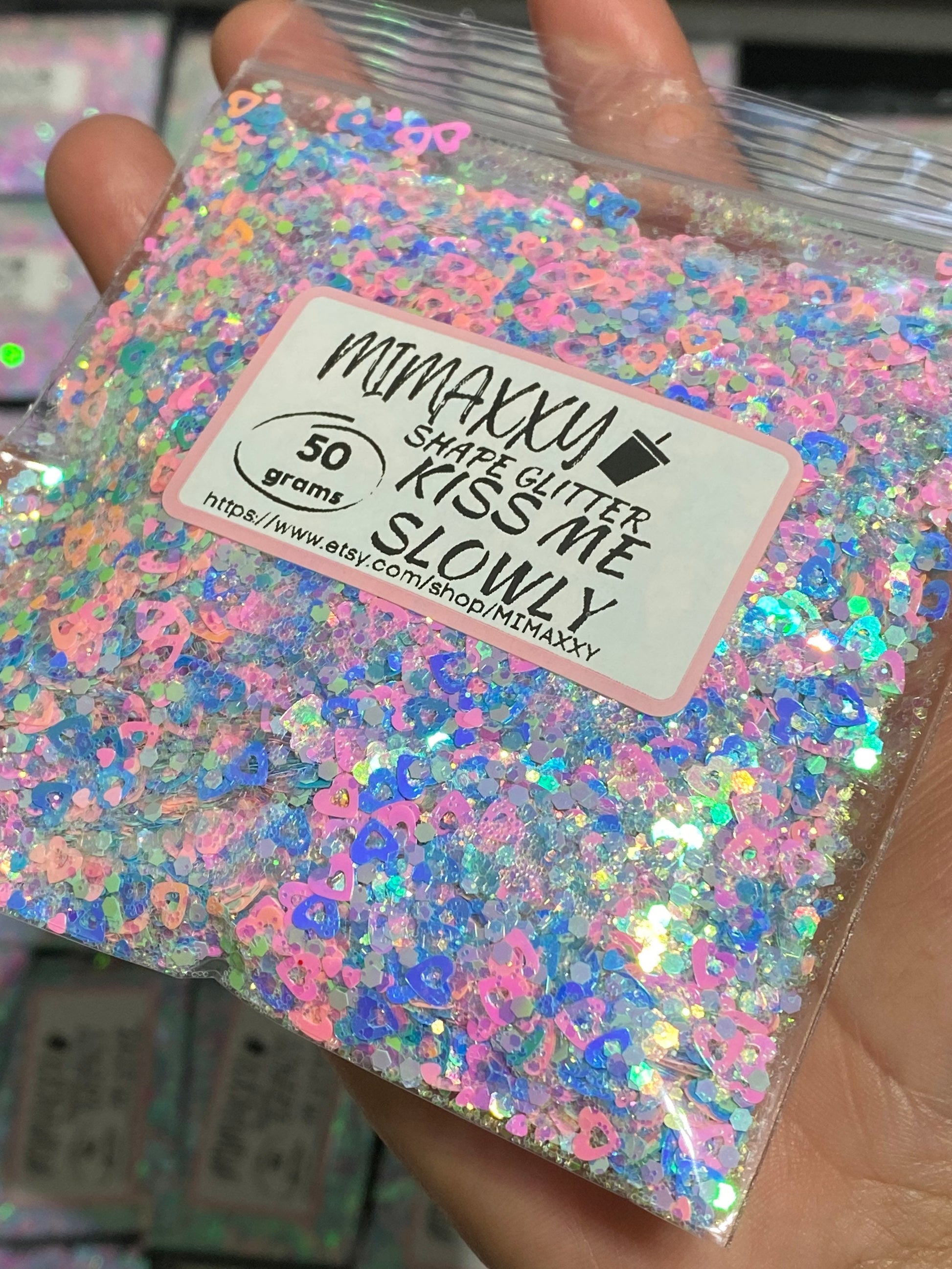KISS ME Slowly ,Shaped Glitter, Chunky Glitter Mix, Cosmetic, Nail Art, Resin art,Snow Globe Tumbler, Valentine, lips, kiss, heart. LOVE 005