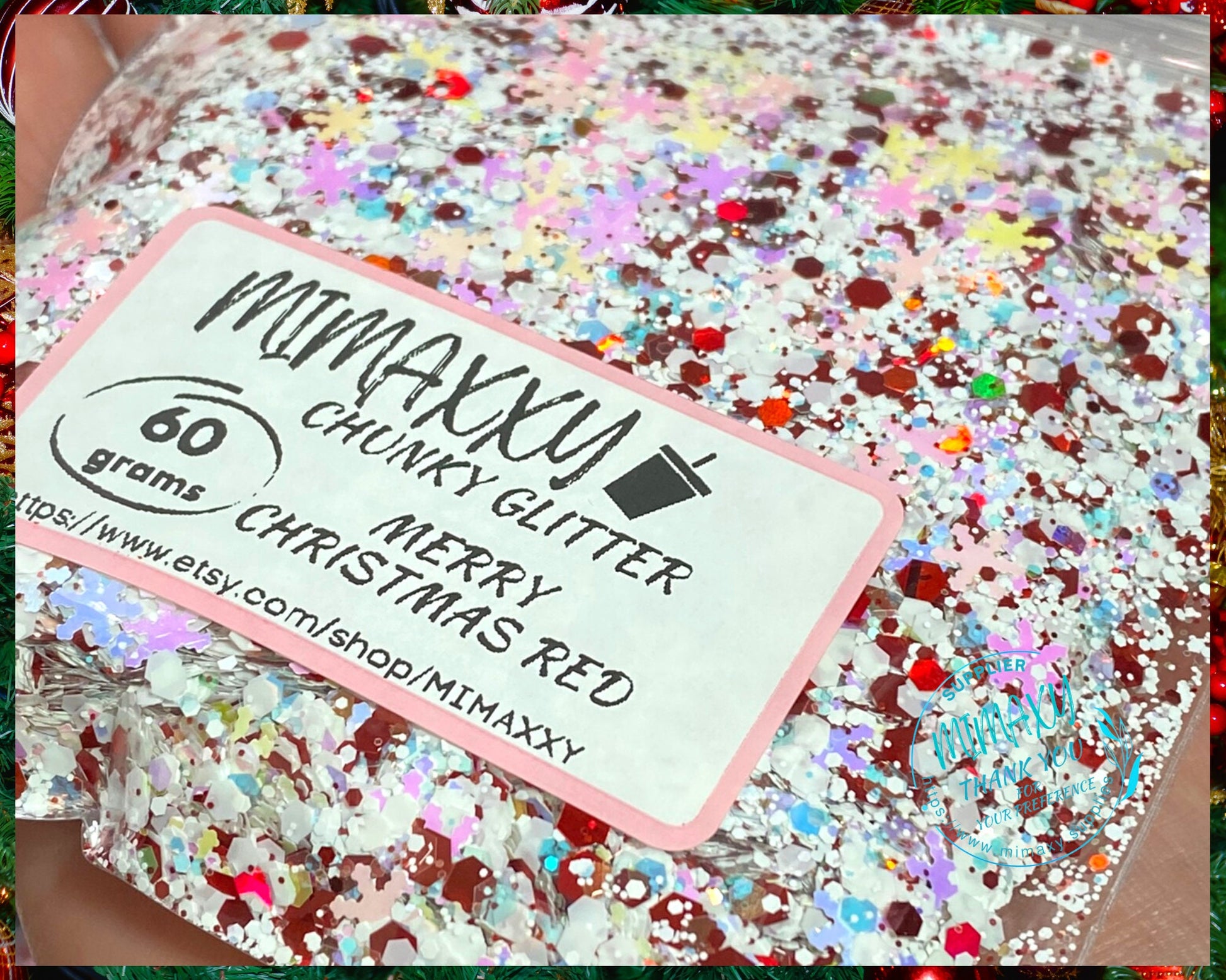 MERRY CHRISTMAS red ,CHUNKY Glitter Mix, Shape Gliiter, Cosmetic Glitter, Body Painting,Nail Art, Resin art,Snow Globe Tumbler, Xmas 30