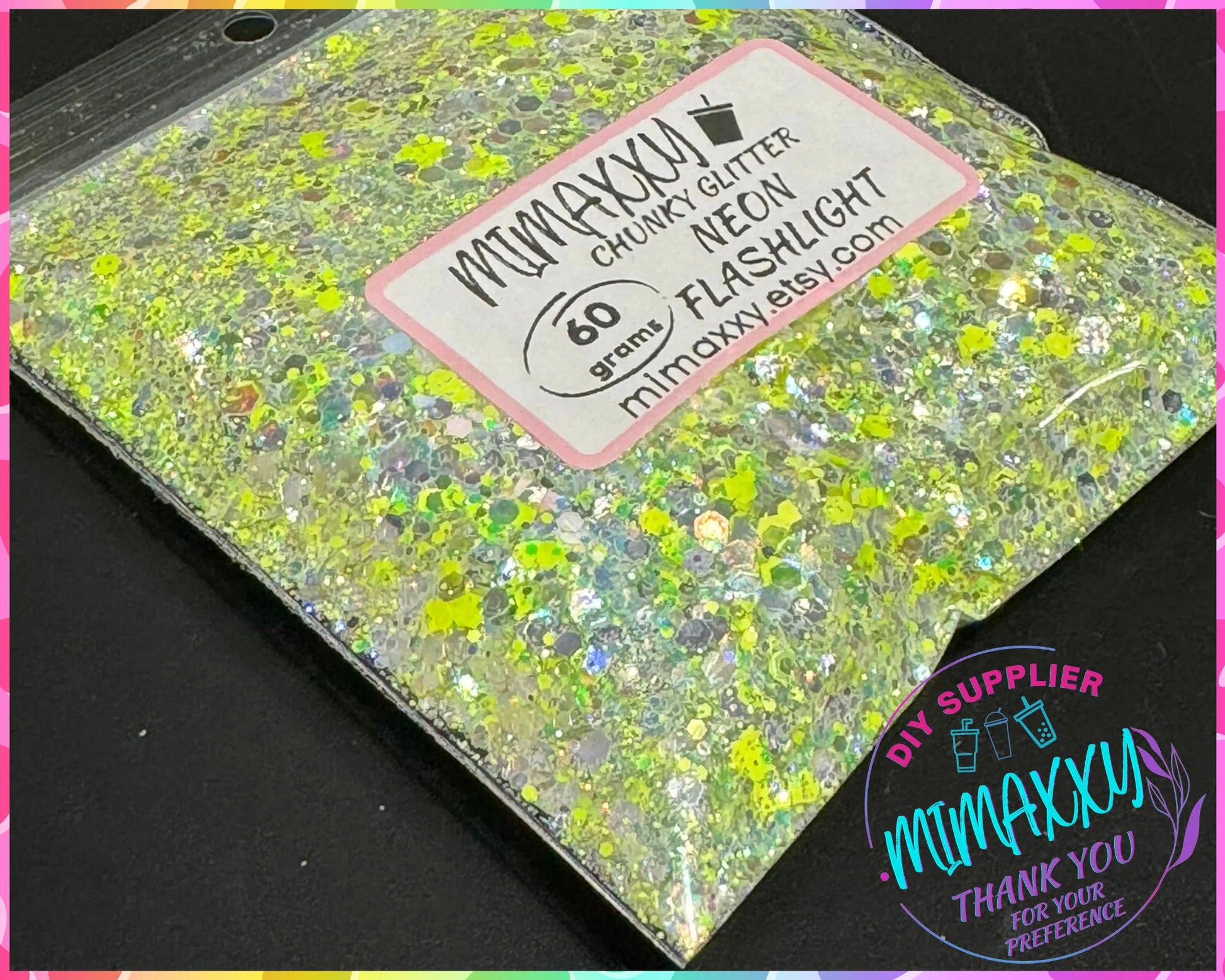 NEON FLASHLIGHT , Chunky Glitter Mix, nail art, Cosmetic Glitter,Nail Art, Resin art,Snow Globe Tumbler,Craft, iridescent, 80, Mirror 004