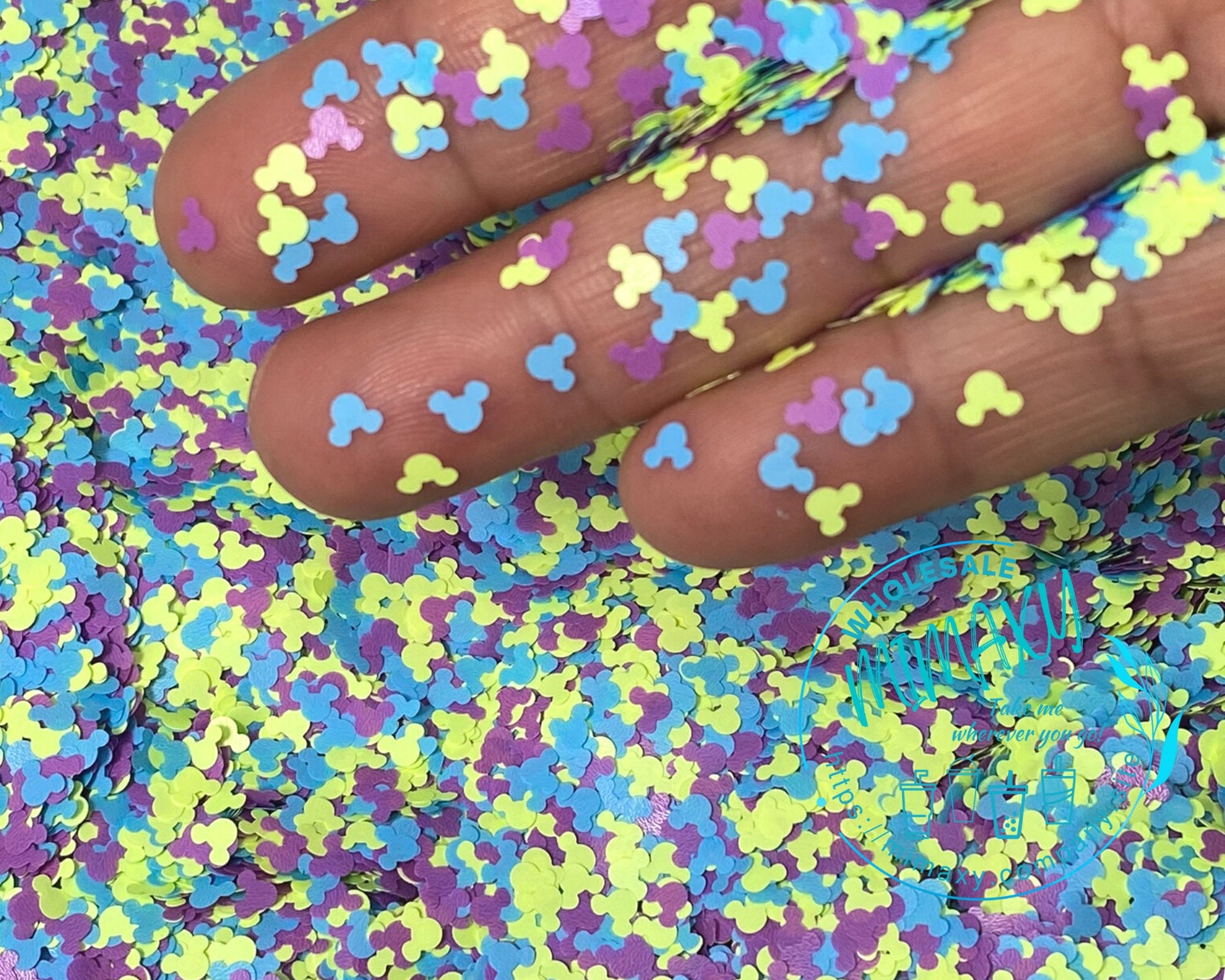 Neon Mouse Head, CHUNKY Glitter, Shape Gliiter, Cosmetic, Body Painting,Nail Art, Resin art,Snow Globe Tumbler,Crafts, MOUSE GLITTER 003