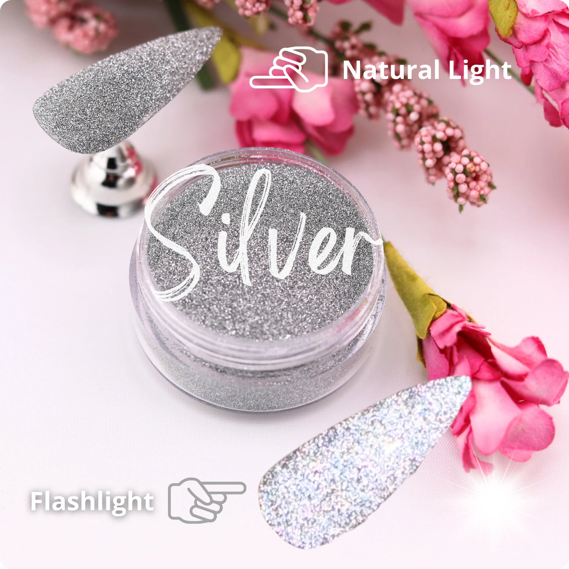 High Reflection: Dazzling diamond powder contains ultra-fine glitter powder pigment and crushed diamond powder, with stunning and vivid silver shine. Nail glitter dazzles in any light. Especially in a dark environment, nail glitter will show tiny bright and intense dots through light refraction.