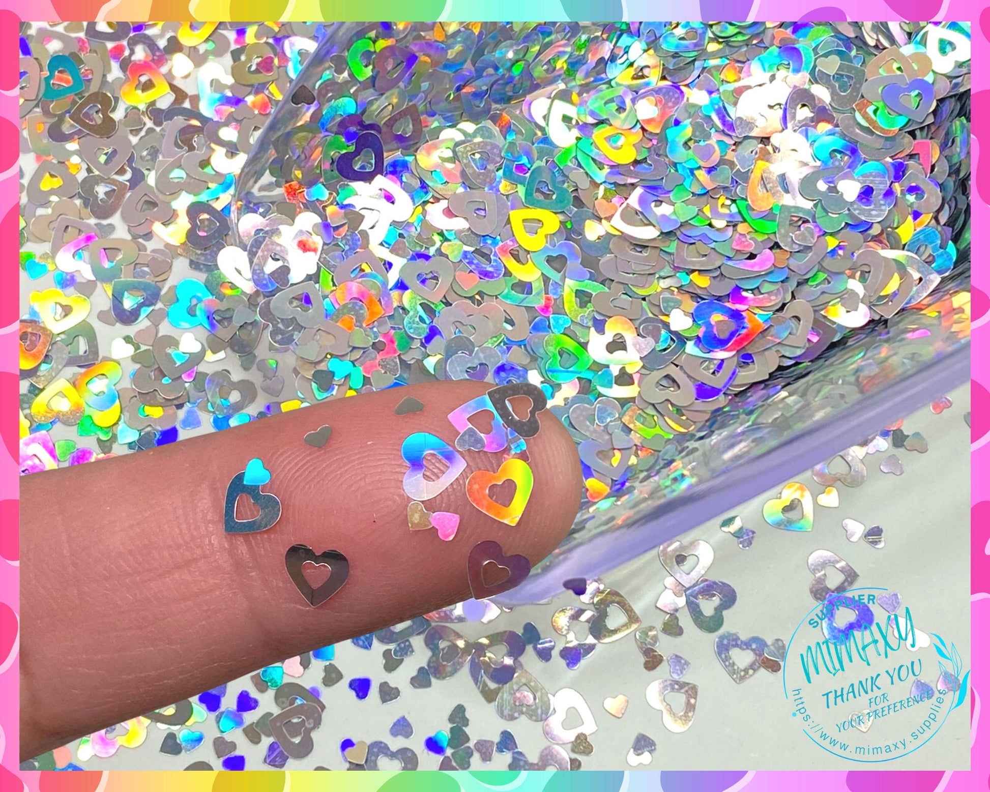 Silver LITTLE HEART Holographic Shaped Glitter, Chunky Glitter, Cosmetic Glitter,Nail Art, Resin art,Snow Globe Tumbler, Valentine, LOVE 018
