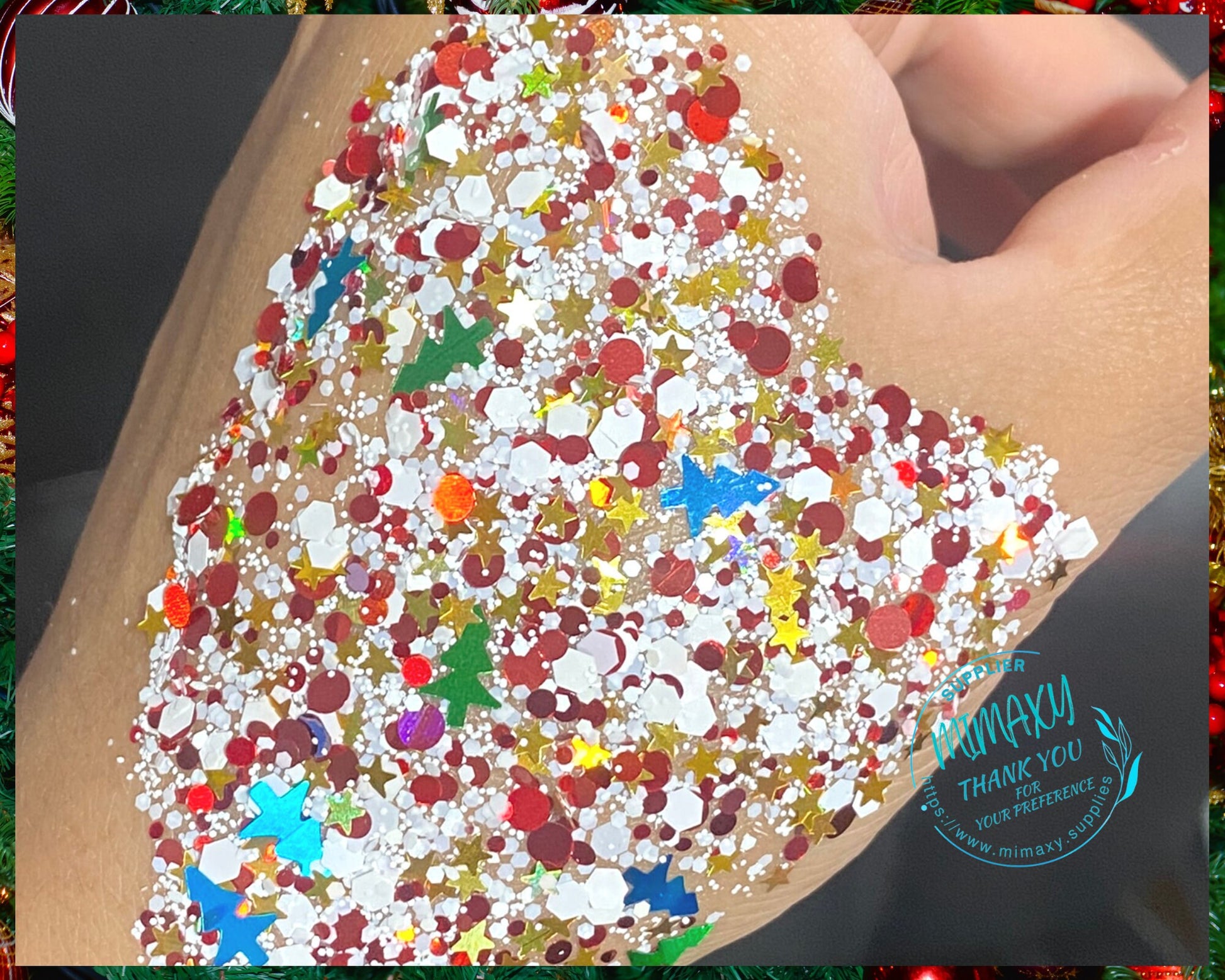 SNOWING CHRISTMAS ,CHUNKY Glitter Mix, Shape Gliiter, Cosmetic Glitter, Body Painting,Nail Art, Resin art,Snow Globe Tumbler,Craft, Xmas 28