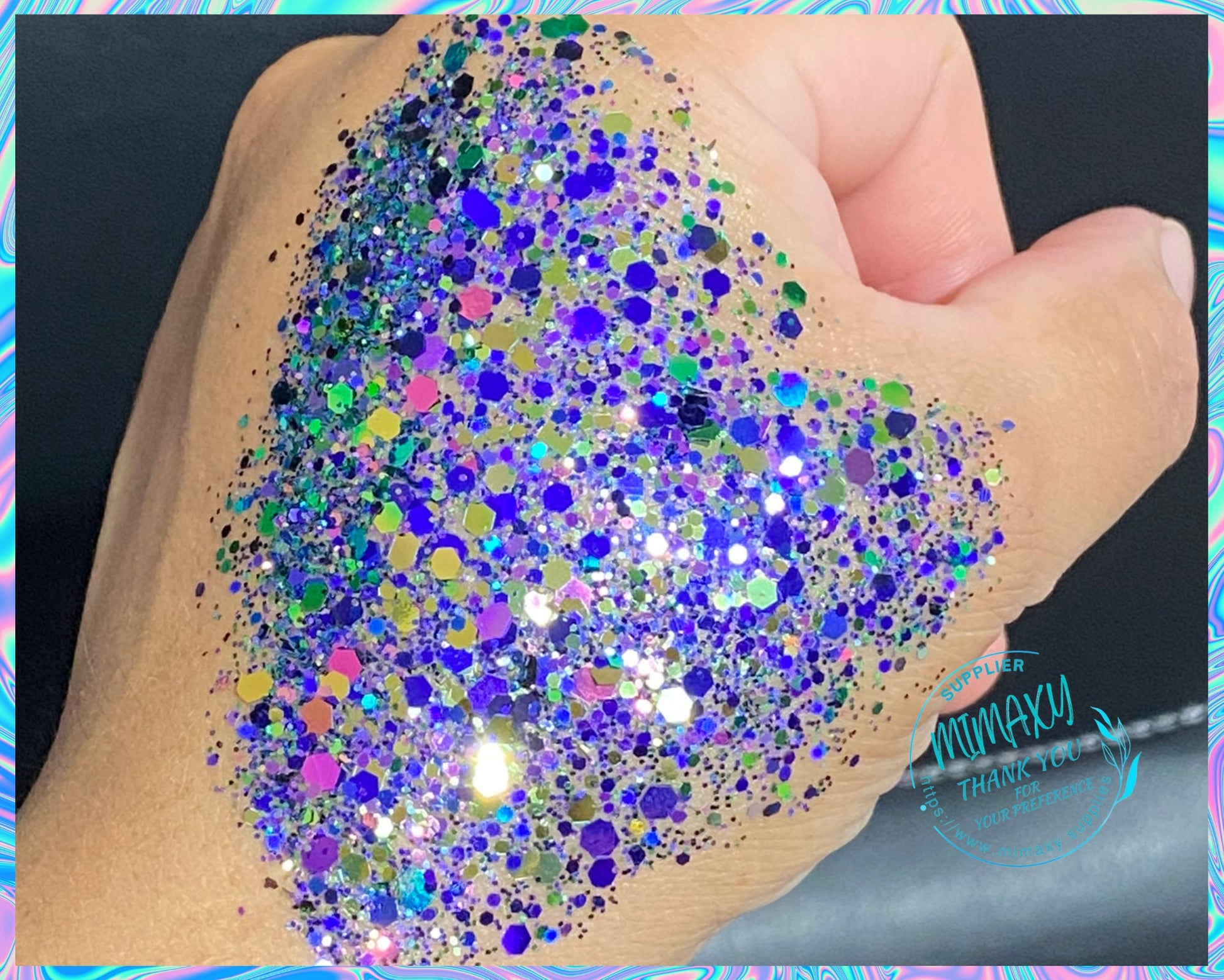 The material with which the glitter is made is appropriate to be used cosmetically in body paint, nail art, makeup, etc. According to the FDA, avoid placing it in the eyes or body cavities.