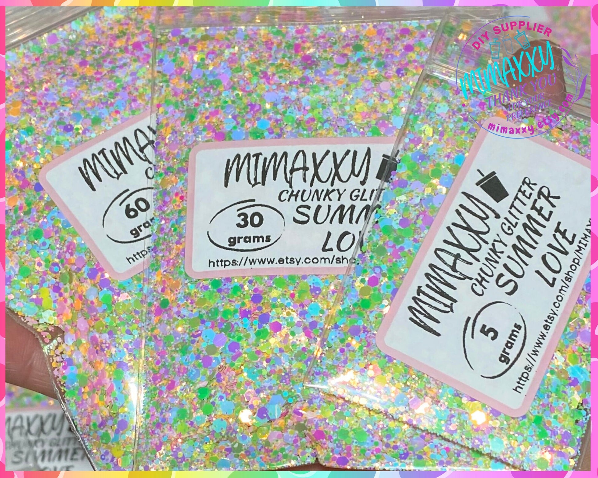 SUMMER LOVE, Chunky Glitter Mix, Cosmetic Glitter,Nail Art, Resin art,Snow Globe Tumbler,Craft,Barbie, iridescent, Beach, MIX 033