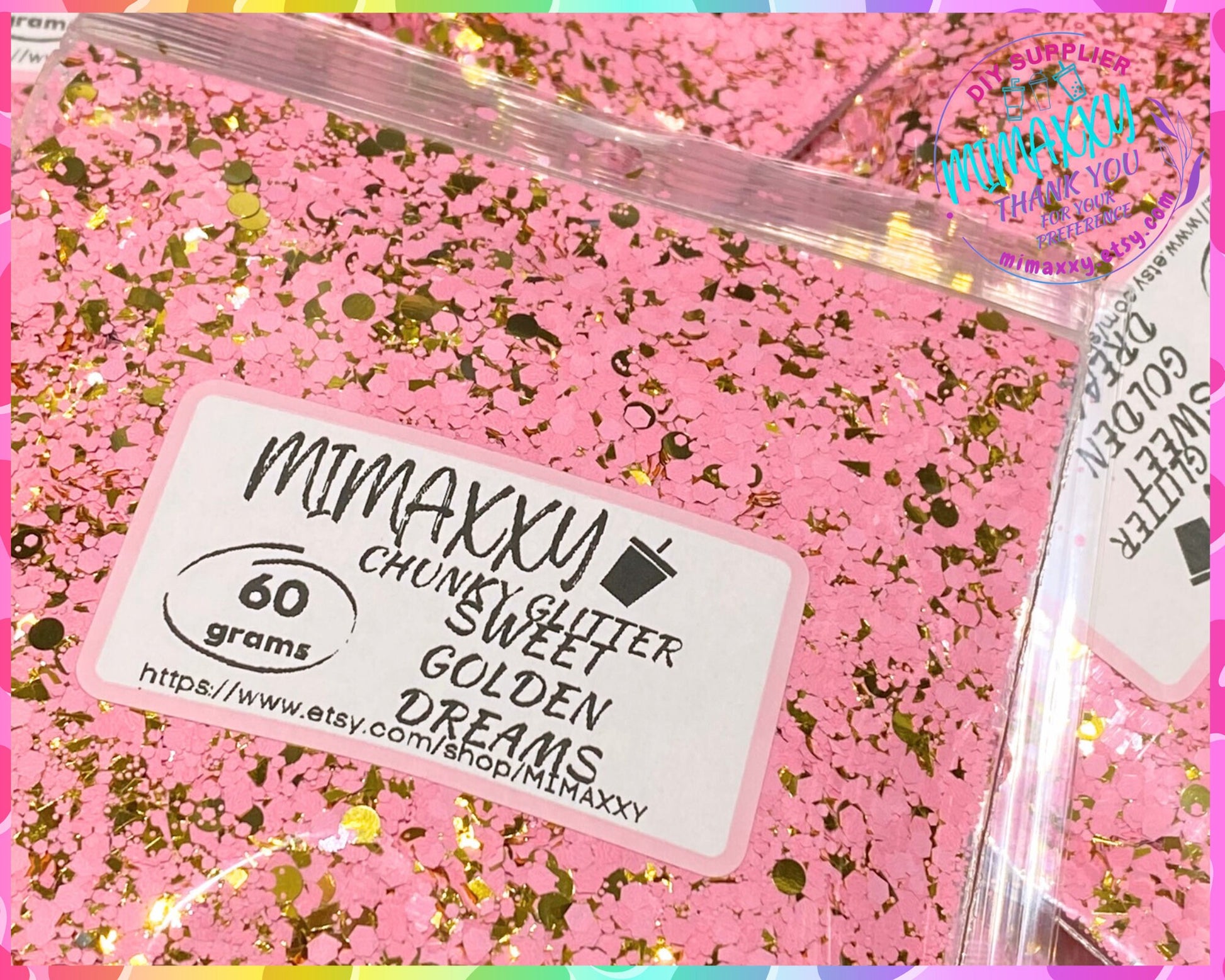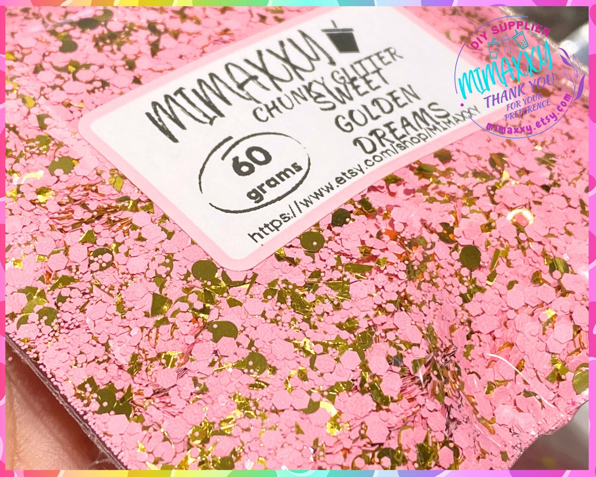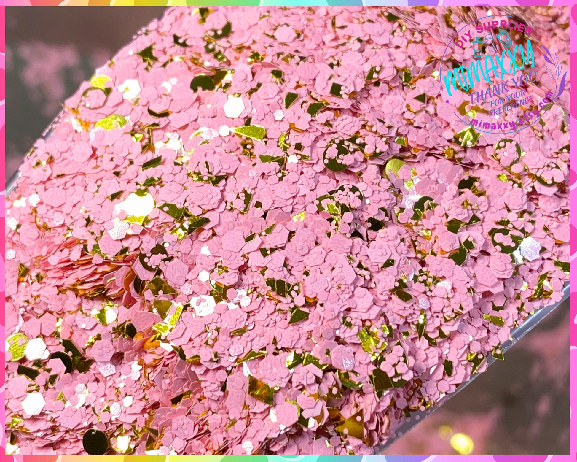 Sweet golden Dreams, baby pink, Chunky Glitter Mix, Cosmetic Glitter,Nail Art, Resin art,Snow Globe Tumbler,Craft, Shape, matte, ROYAL 005