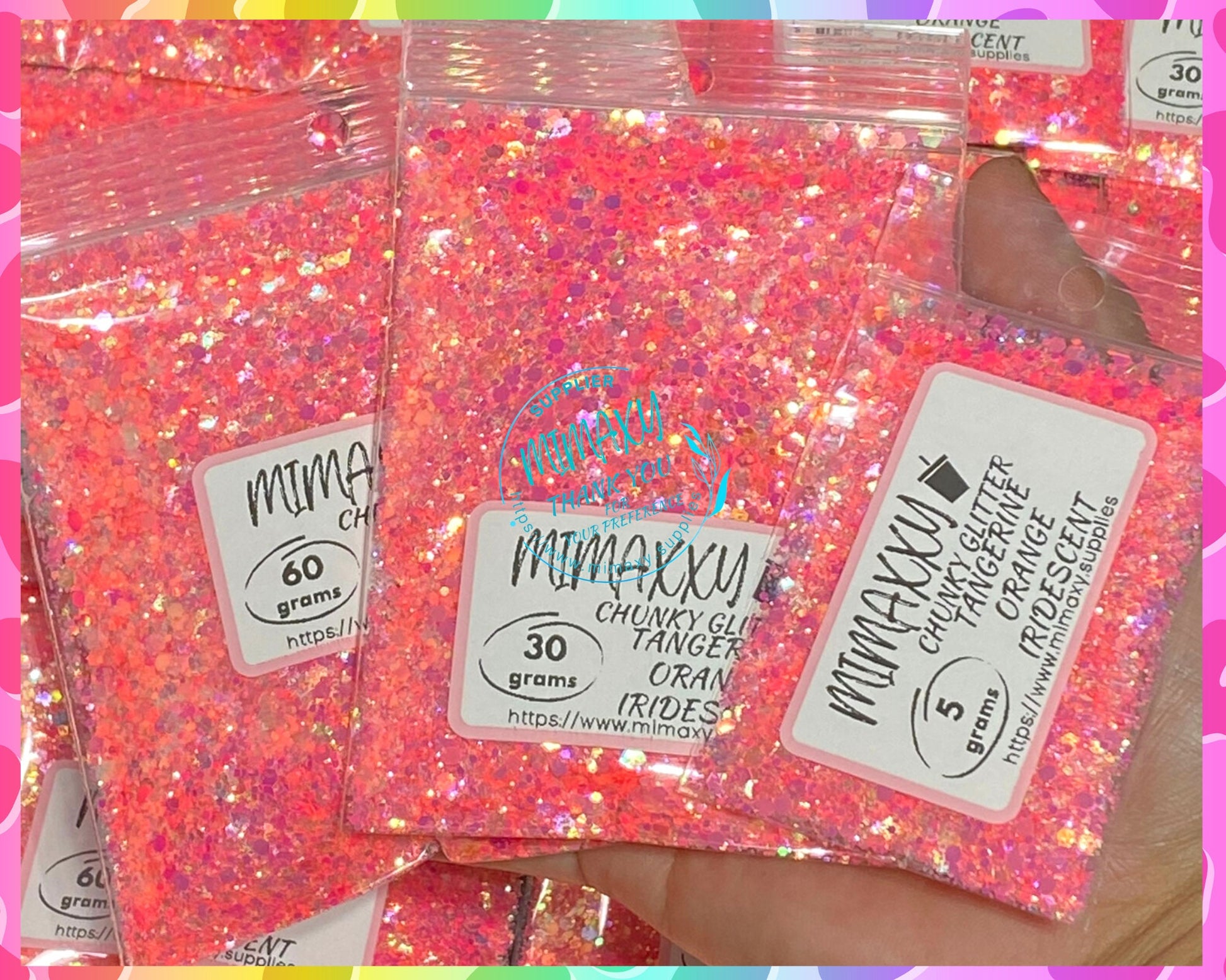 TANGERINE ORANGE Iridescent, Shaped Glitter, CHUNKY Glitter Mix, Cosmetic Glitter,Nail Art, Resin art,Snow Globe Tumbler,Craft, Bright 004