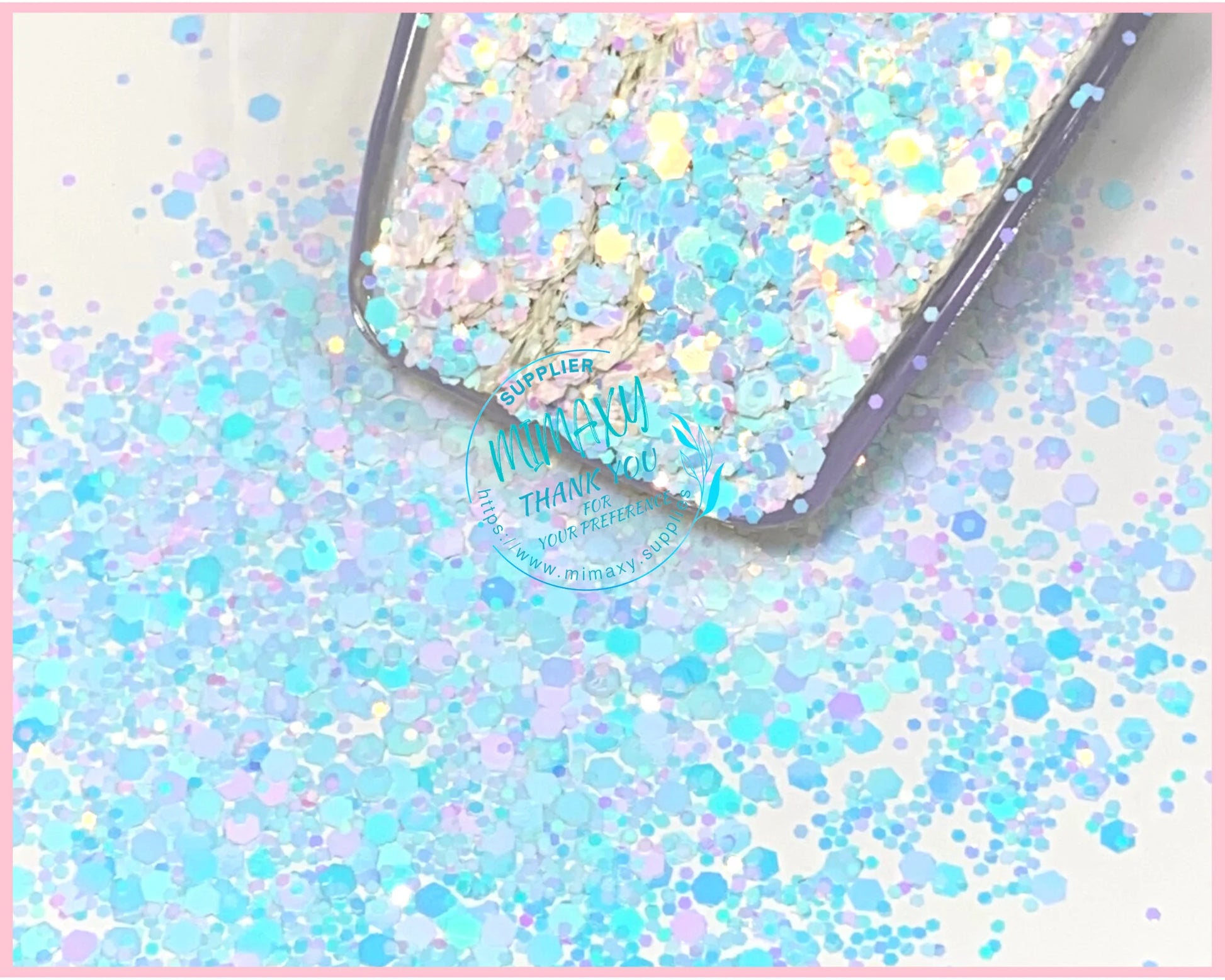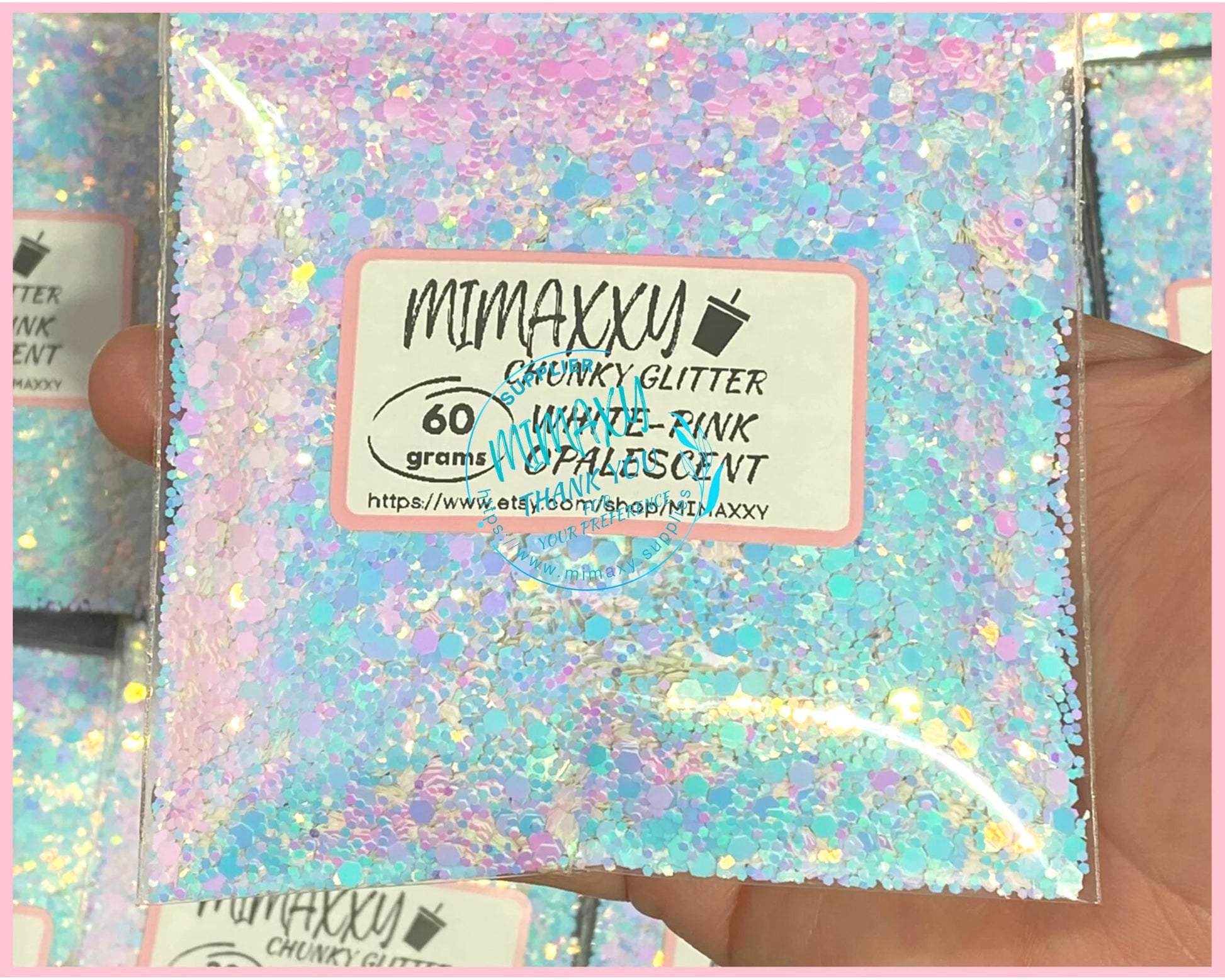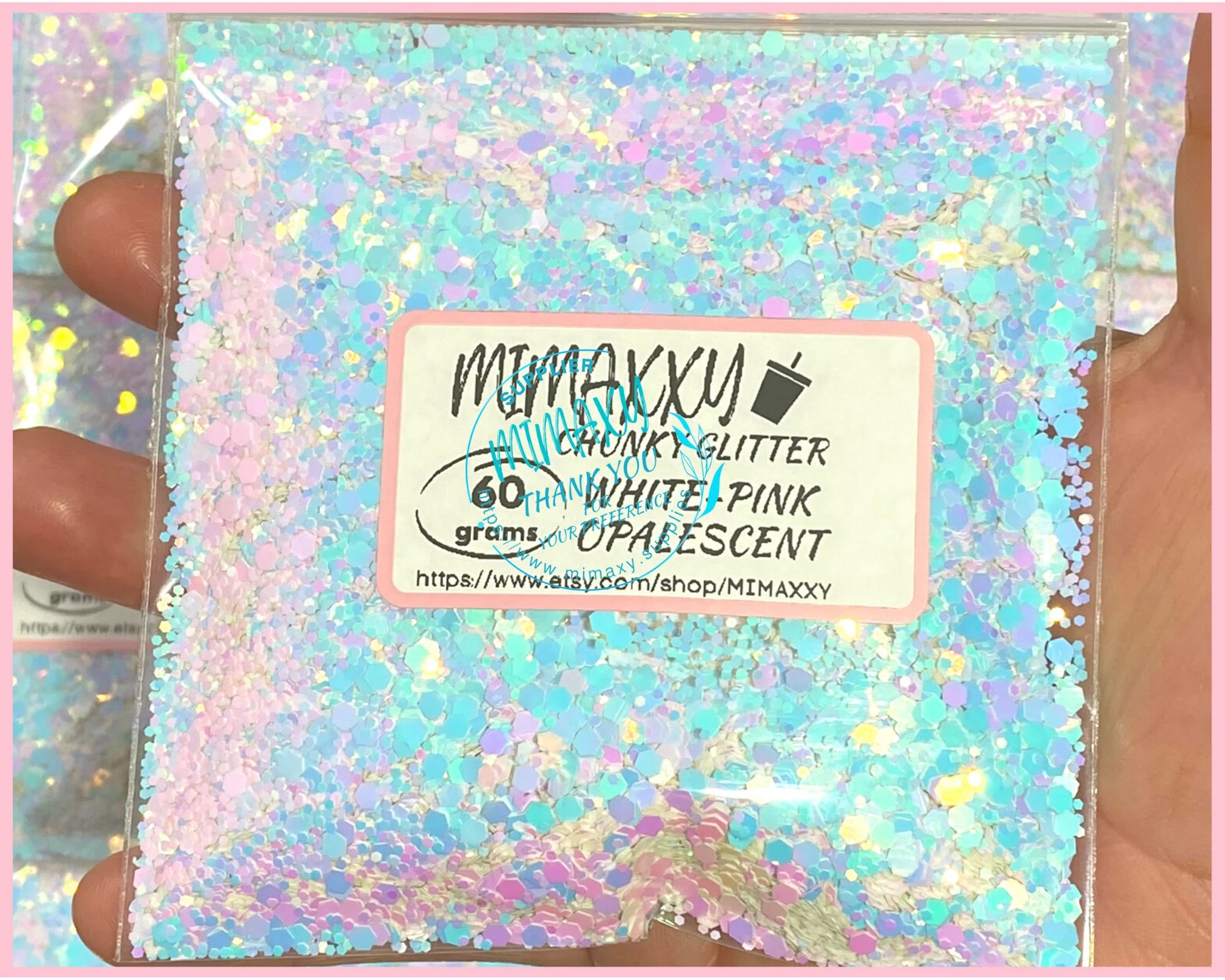 WHITE PINK Opalescent ,Shaped Glitter, Chunky Glitter Mix, Cosmetic Glitter,Nail Art, Resin art,Snow Globe Tumbler,Craft, CHUNKY 004