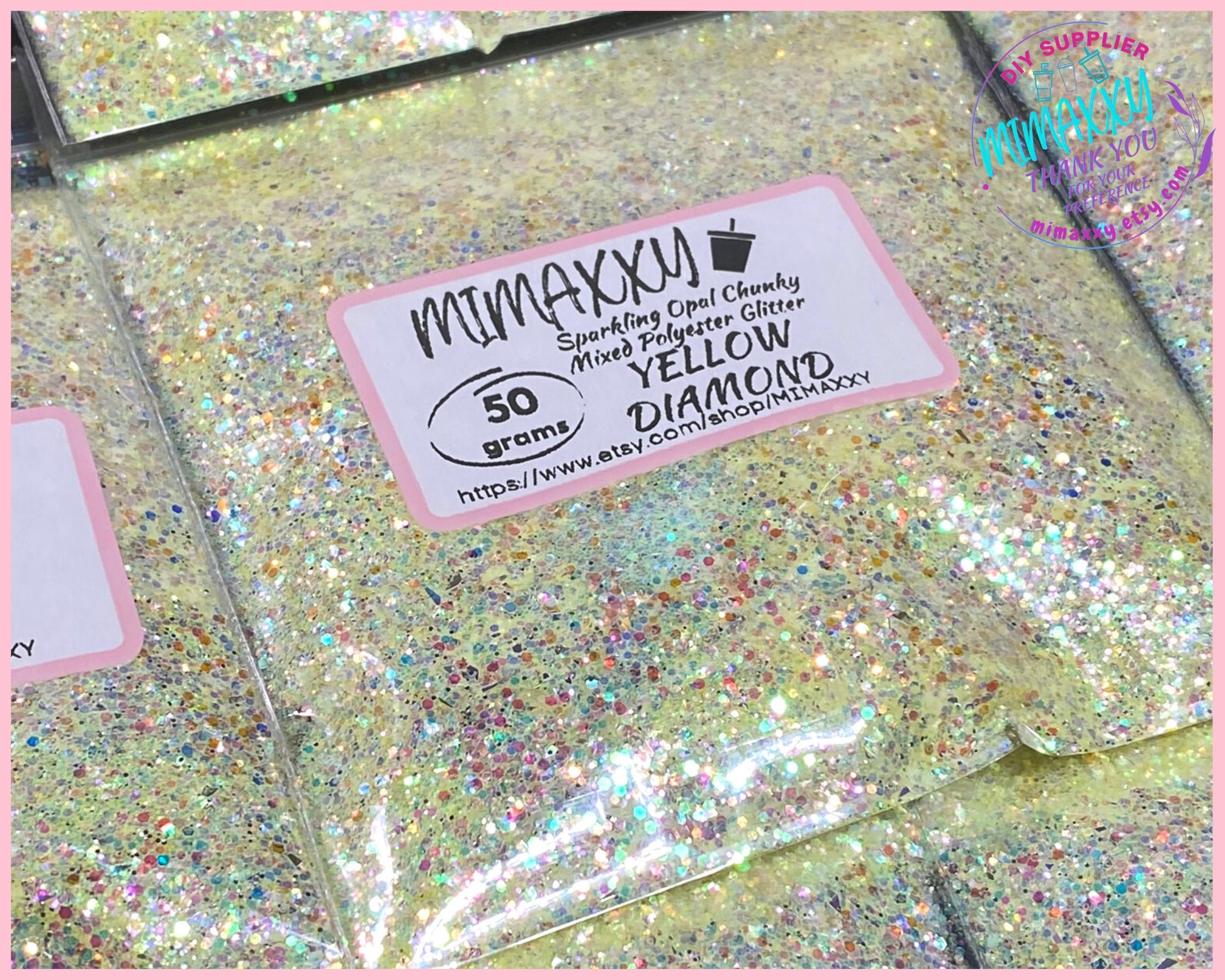 YELLOW DIAMOND, Sparkling Opal Chunky Mixed Polyester Glitter, Cosmetic, body, Glitter,Nail, Art, Resin,Snow Globe Tumbler,Craft, Diamond 2